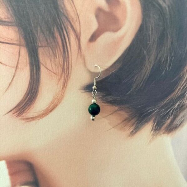 こちらは、8mm玉のグリーンタイガーアイを使用した一粒フックピアスです。シンプルなデザインはシーン問わず、どんなコーディネートにも合わせ易く使い勝手がいいアイテムです。今回は一粒ピアスの要望が多かった為制作しました。気になる方は是非この機会にどうぞ。