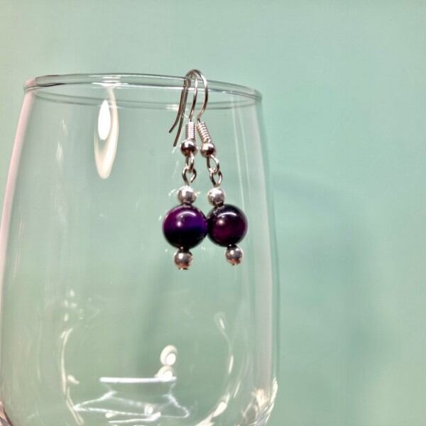 こちらは、8mm玉のパープルタイガーアイを使用した一粒フックピアスです。シンプルなデザインはシーン問わず、どんなコーディネートにも合わせ易く使い勝手がいいアイテムです。今回は一粒ピアスの要望が多かった為制作しました。気になる方は是非この機会にどうぞ。