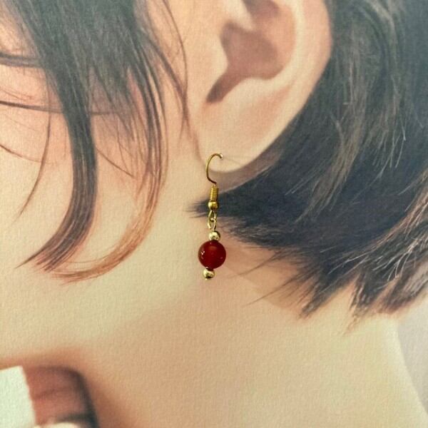 こちらは、8mm玉の緑瑪瑙を使用した一粒フックピアスです。シンプルなデザインはシーン問わず、どんなコーディネートにも合わせ易く使い勝手がいいアイテムです。今回は一粒ピアスの要望が多かった為制作しました。気になる方は是非この機会にどうぞ。