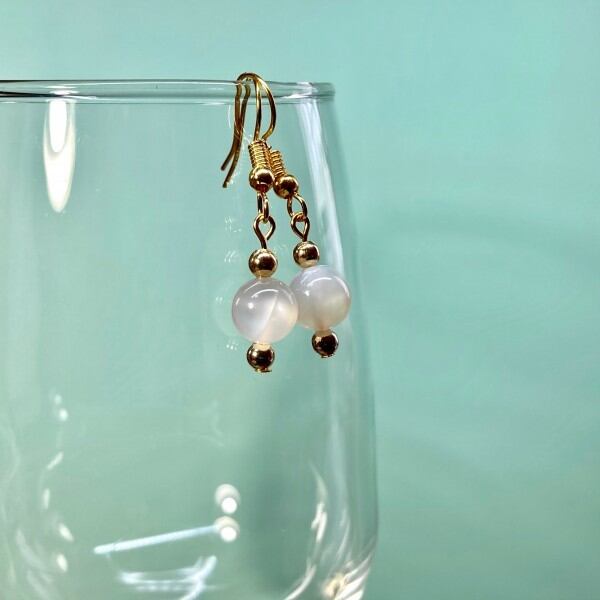 こちらは、8mm玉のムーンストーンを使用した一粒フックピアスです。シンプルなデザインはシーン問わず、どんなコーディネートにも合わせ易く使い勝手がいいアイテムです。今回は一粒ピアスの要望が多かった為制作しました。気になる方は是非この機会にどうぞ。
