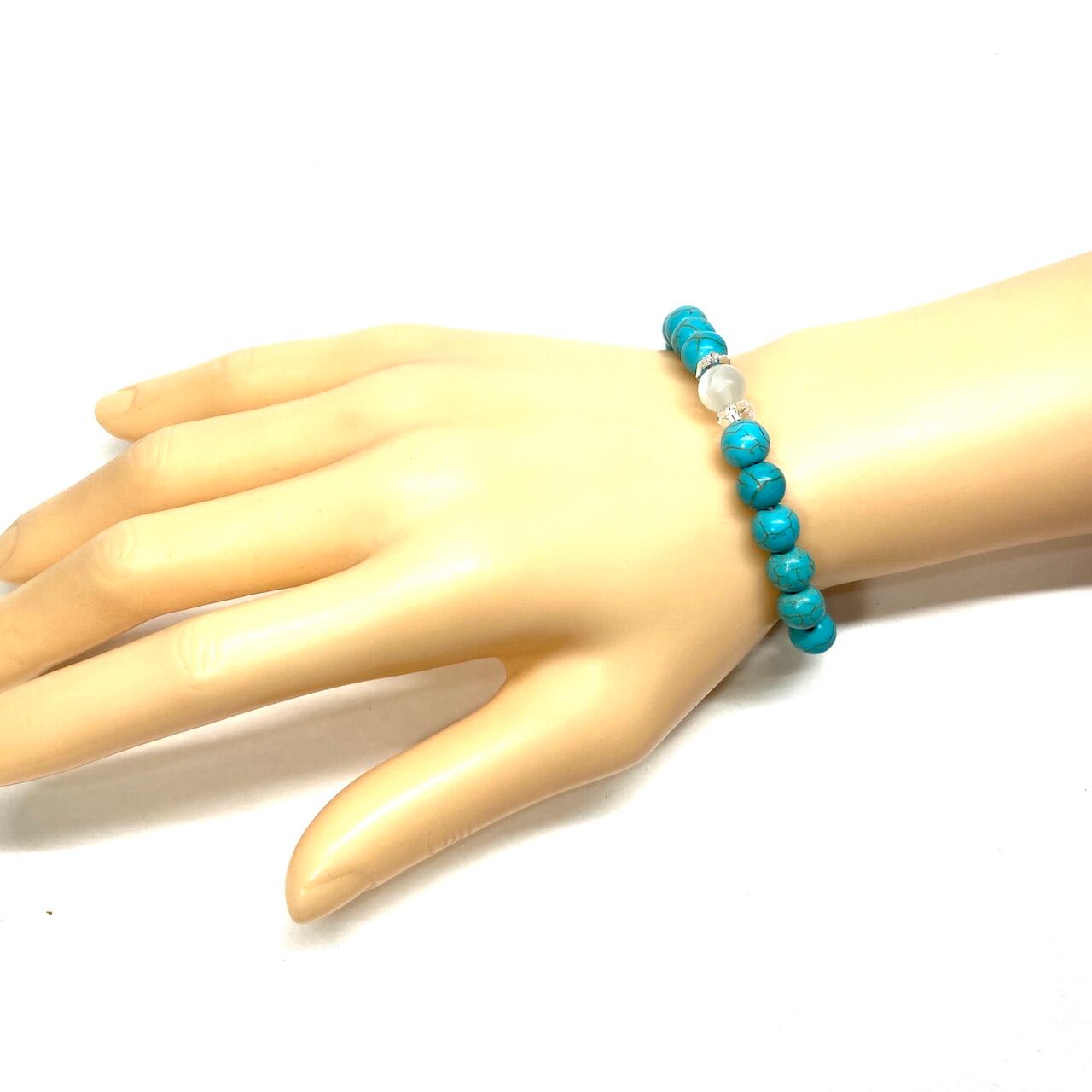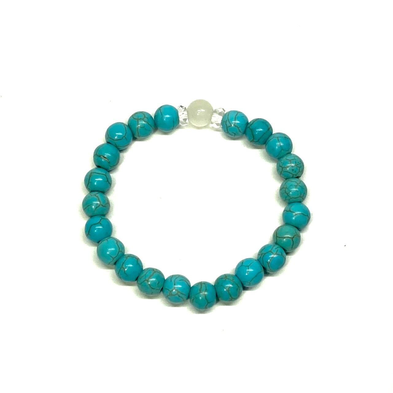 こちらは、ムーンストーンとターコイズを組み合わせた一粒ブレスレットです。今回はお買い得プライスにて販売しておりますので是非この機会にどうぞ。(お買い得プライスは予告なく終了する場合がありますのでお早めに!!) 石大きさ8mm玉で基本サイズは内周15cm(サイズ変更は1cmあたり100円で承っております。サイズ変更の場合は金額変更しますのでメッセージにてご連絡くださいませ。)です。