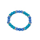 ターコイズ&キャッツアイ(ブルー) パワーストーン ブレスレット (シルバー)メンズ レディース ハンドメイト