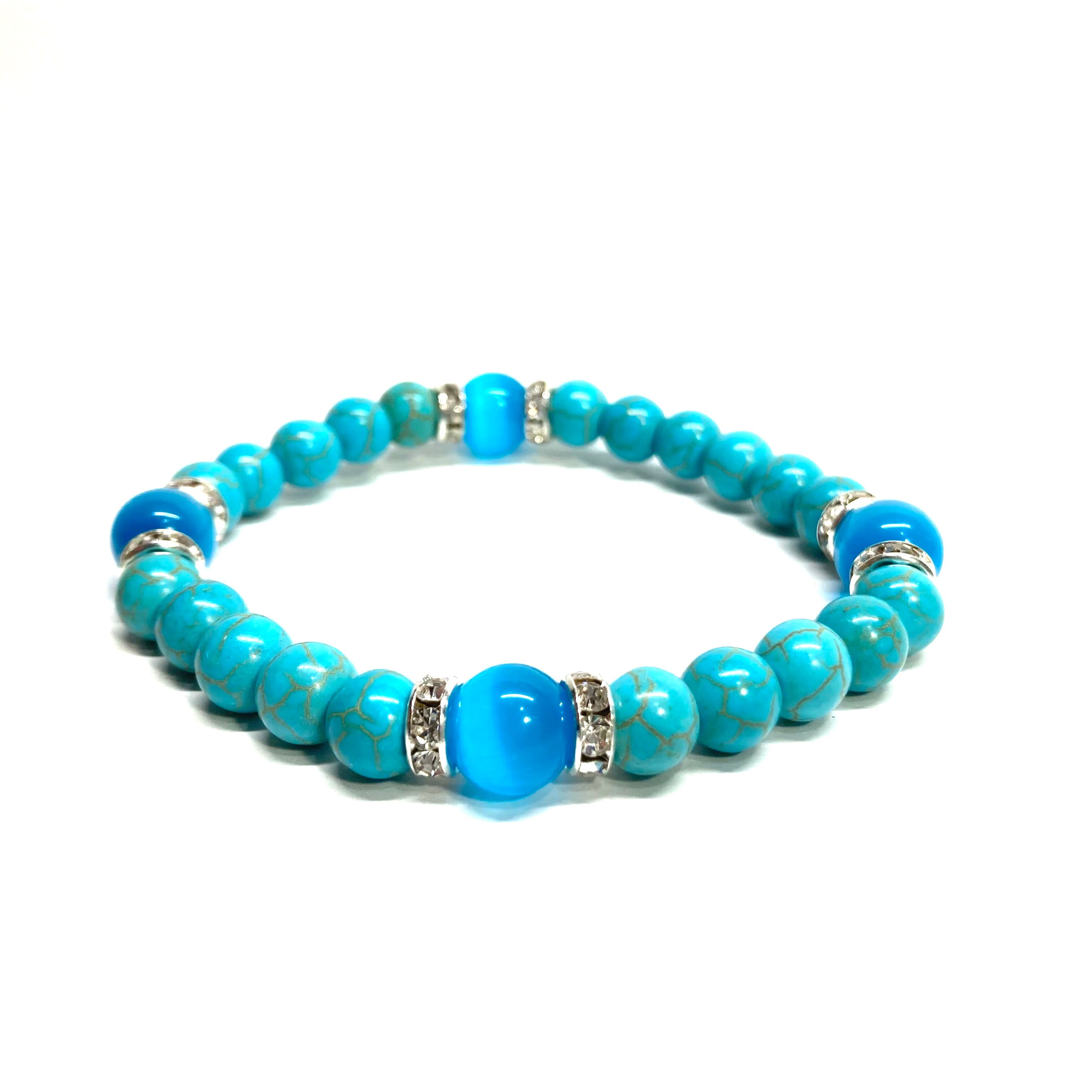 ターコイズ&キャッツアイ(ライトブルー) パワーストーン ブレスレット (シルバー)メンズ レディース ハンドメイト