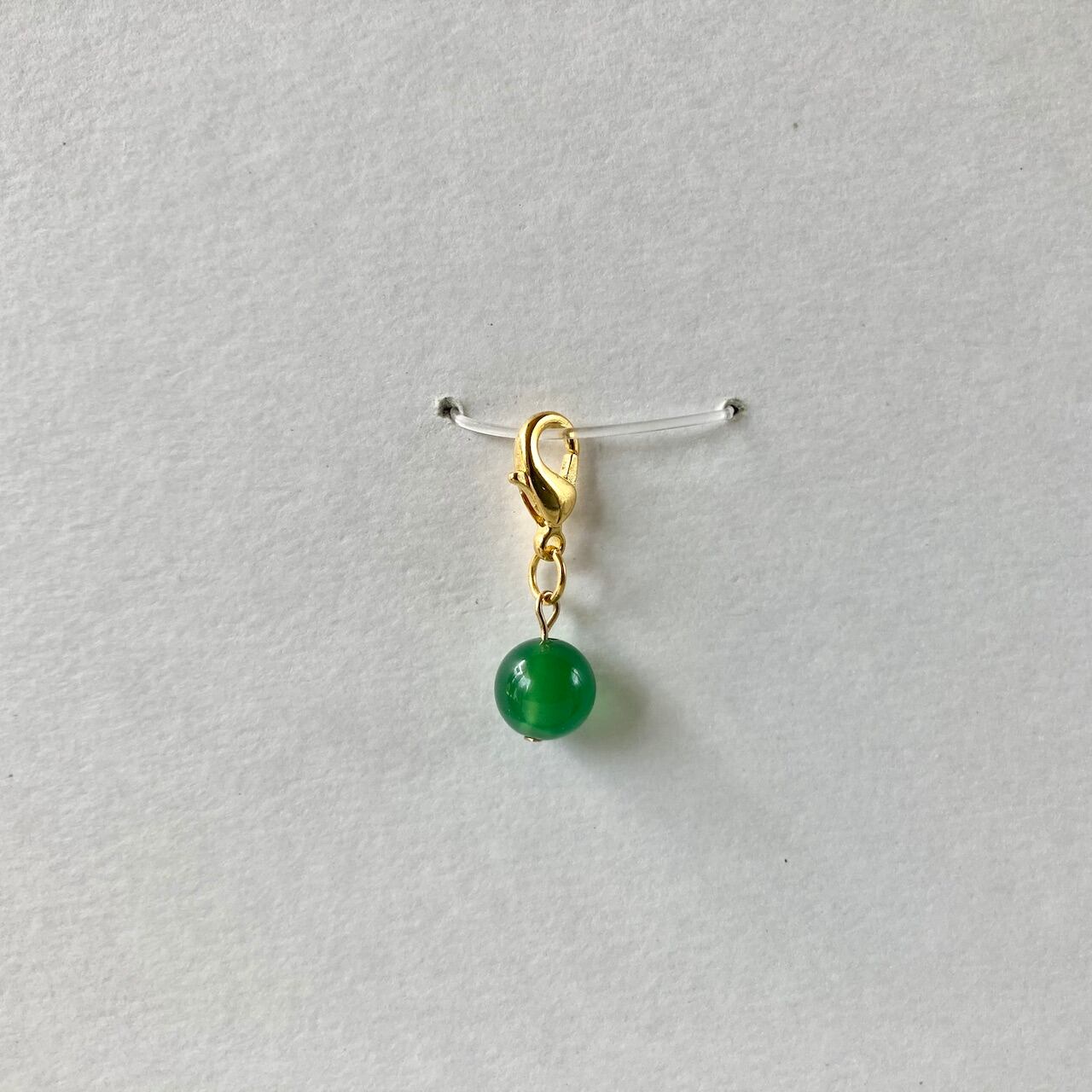 こちらは、8mm玉の緑瑪瑙を使用した一粒ストラップです。携帯電話にそのまま付けたり、ストラップから取り外しできるデザインに制作しておりますので、ストラップから外してお財布やポーチに付けたり、マスクチャームとも使えるデザインに仕上げています。気になる方は是非この機会にどうぞ。
