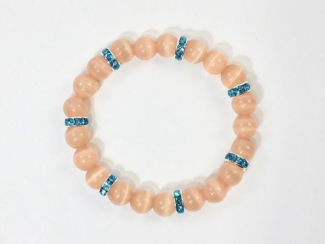 キャッツアイ(オレンジ) パワーストーン ブレスレット (ライトブルー)