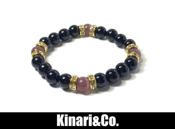 オニキス&キャッツアイ(パープル) パワーストーン ブレスレット (ゴールド)レディース 女性 数珠ブレス 開運 プレゼント ギフト