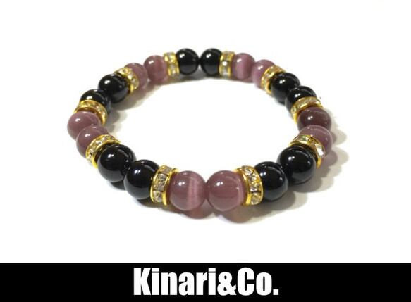 オニキス&キャッツアイ(パープル) パワーストーン ブレスレット (ゴールド)レディース 女性 数珠ブレス 開運 プレゼント ギフト