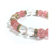 水晶&チェリークォーツ パワーストーン ブレスレット 天然石ブレスレット 8mm(ゴールド)レディース 女性 数珠ブレス 開運 プレゼント ギフト