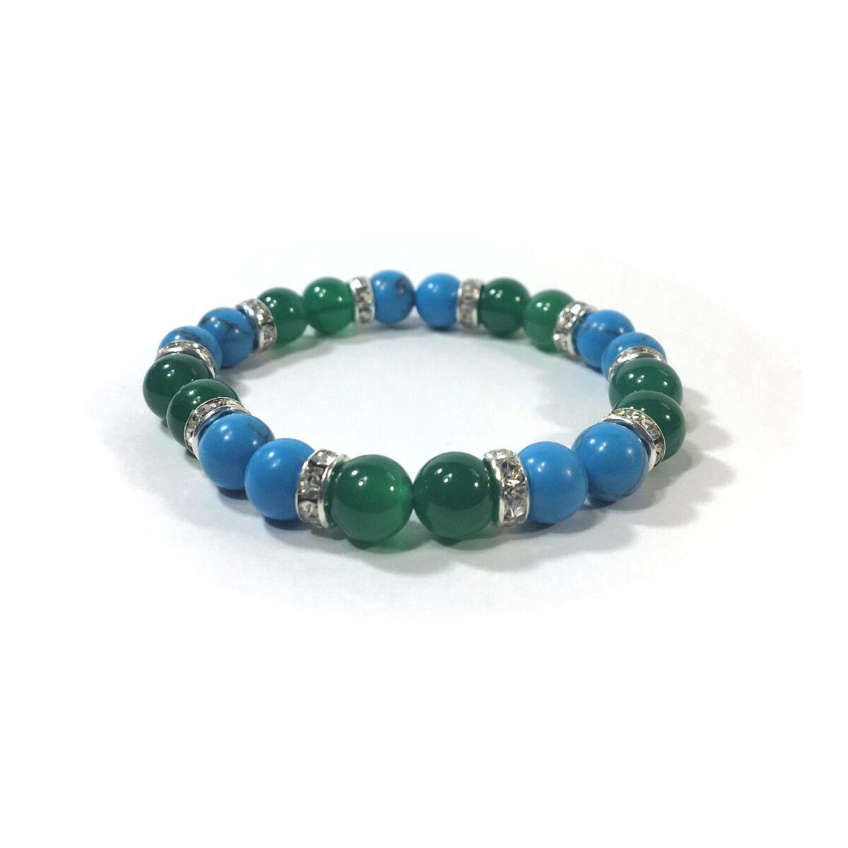 ターコイズ&緑瑪瑙 パワーストーン ブレスレット 天然石ブレス 8mm(シルバー)レディース 女性 数珠ブレス 開運 プレゼント ギフト