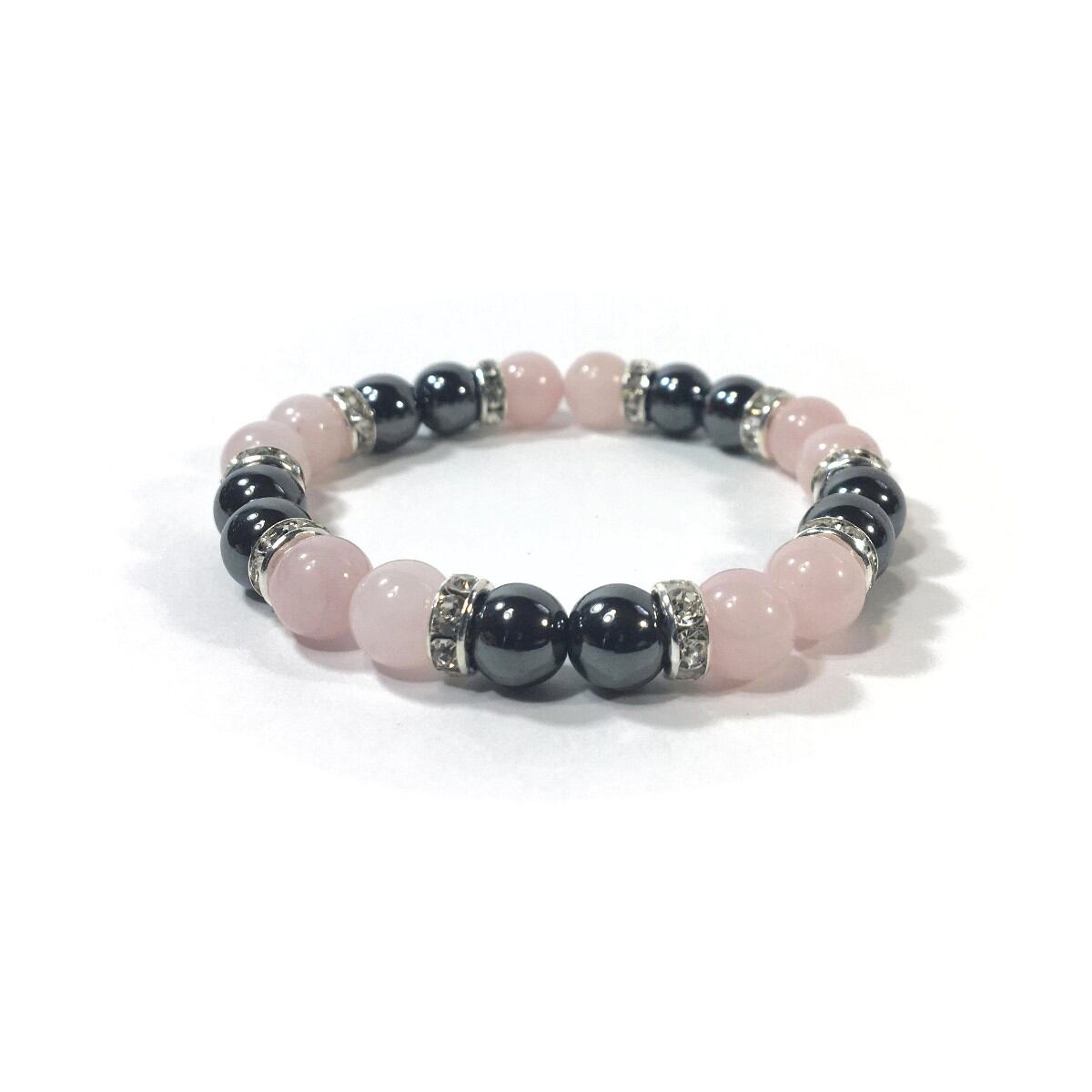 ローズクォーツ&ヘマタイト パワーストーン ブレスレット 天然石 8mm(シルバー)レディース 女性 数珠ブレス 開運 プレゼント ギフト