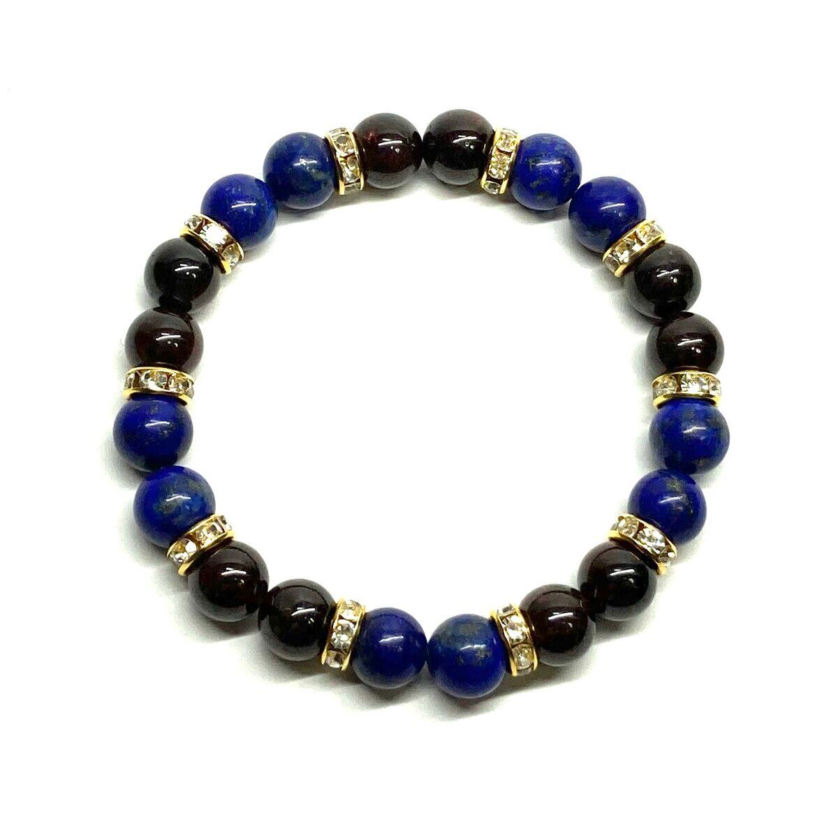 ラピスラズリ&ガーネット パワーストーン ブレスレット 天然石 (ゴールド) 8mm レディース 女性 数珠ブレス 開運 プレゼント ギフト