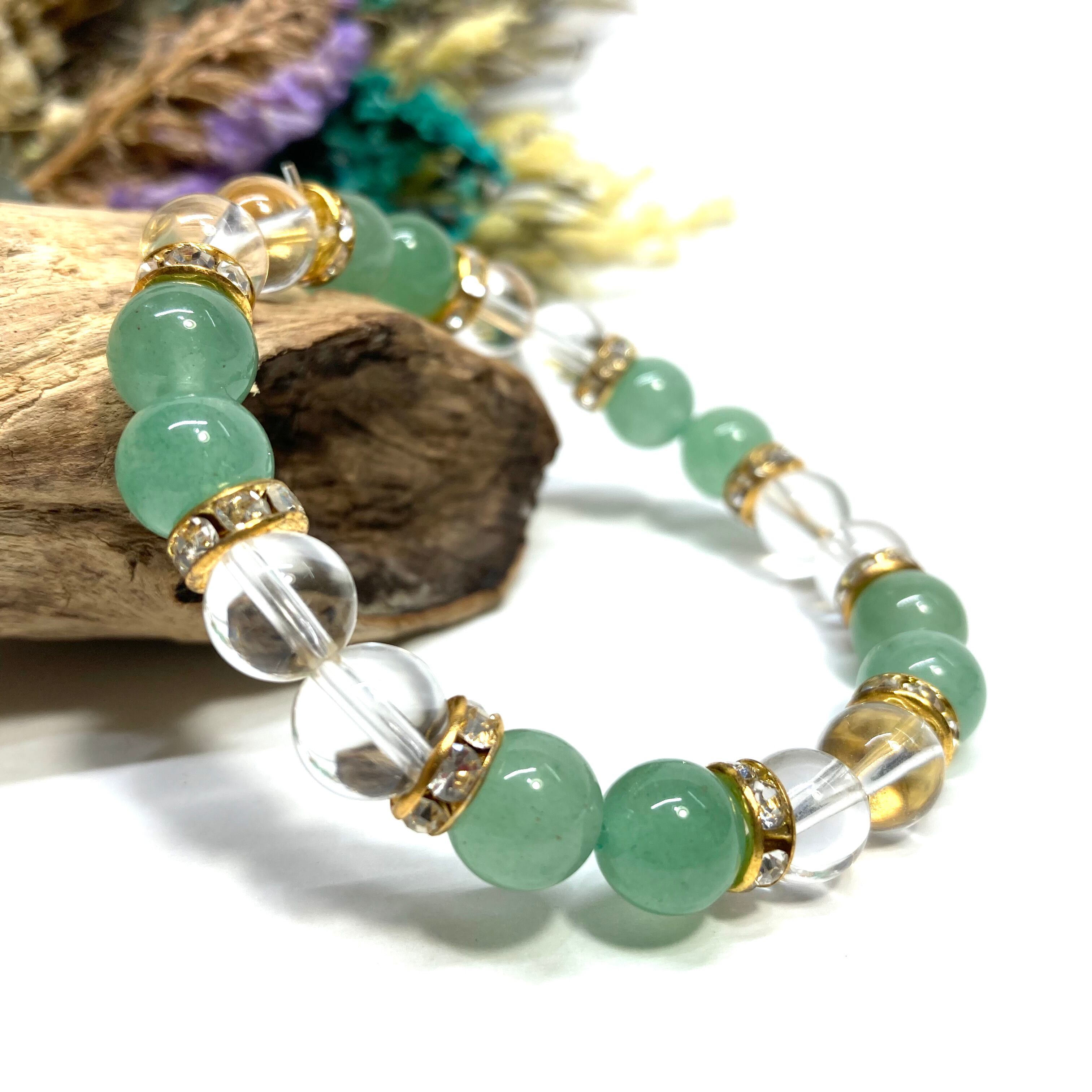アベンチュリン&水晶 パワーストーン ブレスレット 天然石ブレス (ゴールド) 8mm レディース 女性 数珠ブレス 開運 プレゼント ギフト