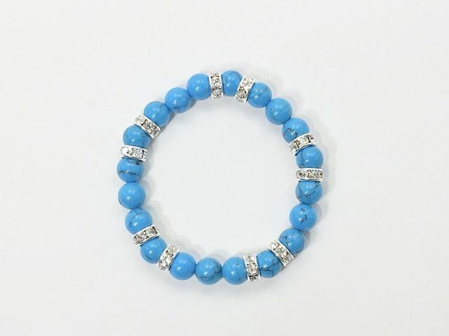 こちらは、8mm玉のターコイズを使ったパワーストーンブレスレットです。シンプルなデザインでどんなコーディネートにも合わせやすいデザインに仕上げています。サイズは内周約15cmです。気になる方は是非この機会にどうぞ。