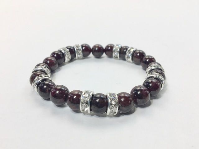 こちらは、8mm玉のガーネットを使ったパワーストーンブレスレットです。シンプルなデザインでどんなコーディネートにも合わせやすいデザインに仕上げています。サイズは内周約14cmです。気になる方は是非この機会にどうぞ。