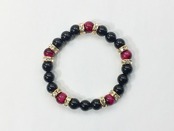 こちらは、8mm玉のオニキスとピンクタイガーアイを使ったパワーストーンブレスレットです。シンプルなデザインでどんなコーディネートにも合わせやすいデザインに仕上げています。サイズは内周約15cmです。気になる方は是非この機会にどうぞ。