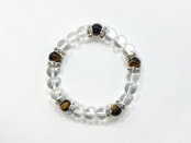 こちらは、8mm玉のタイガーアイと水晶を組み合わせたパワーストーンブレスレットです。今回は五芒星デザインで石を配置しております。五芒星とは、陰陽道の基本概念となった陰陽五行説、木・火・土・金・水の5つの元素の働きの相克を表したものであり、五芒星は厄除・開運を願うデザインと重宝されているデザインです。サイズは内周約15cmです。気になる方は是非この機会にどうぞ。
