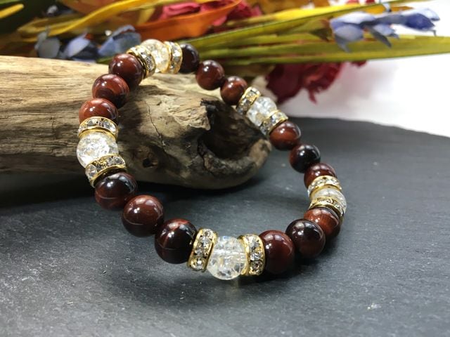 パワーストーン ブレスレット レッドタイガーアイ&クラック水晶 8mm(ゴールド)レディース 女性 数珠ブレス 開運 プレゼント ギフト