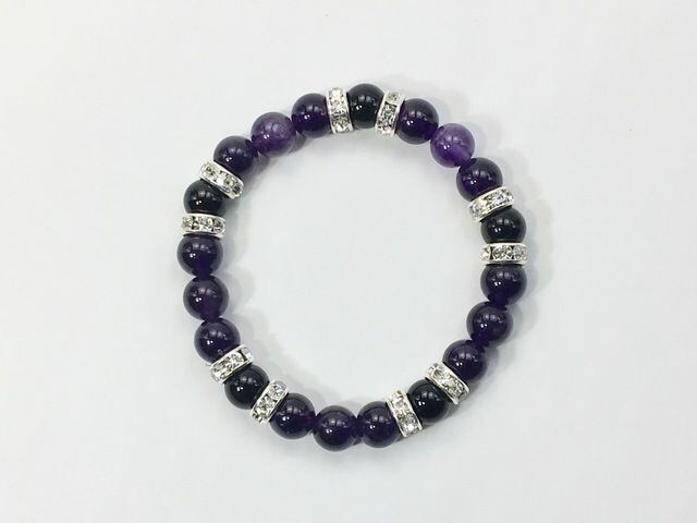 パワーストーン ブレスレット アメジスト&オニキス 8mm(シルバー)レディース 女性 数珠ブレス 開運 プレゼント ギフト