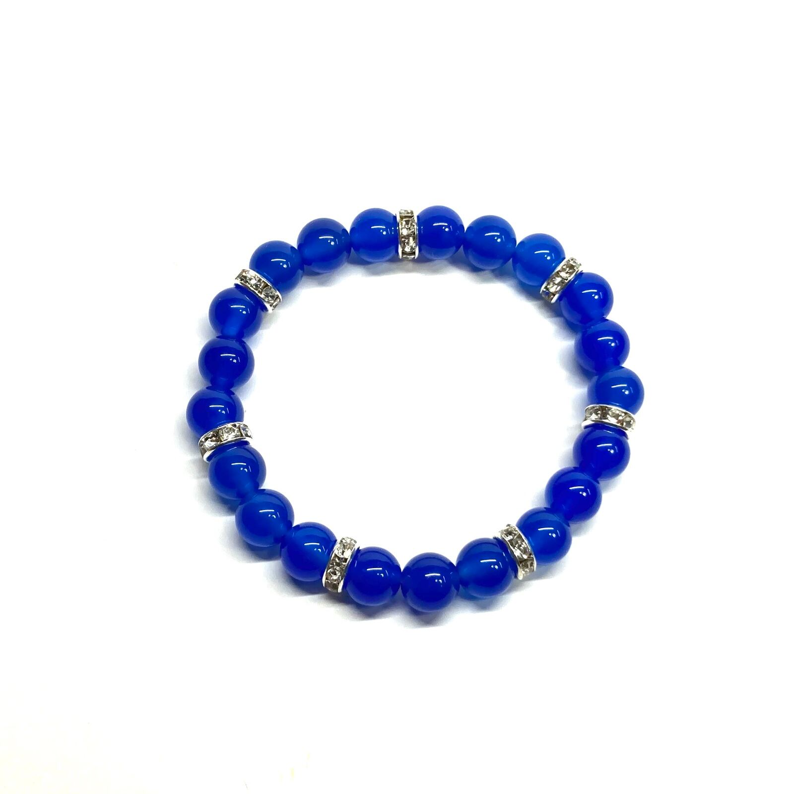 こちらは、8mm玉の青瑪瑙を使ったパワーストーンブレスレットです。シンプルなデザインでどんなコーディネートにも合わせやすいデザインに仕上げています。サイズは内周約15cmです。気になる方は是非この機会にどうぞ。