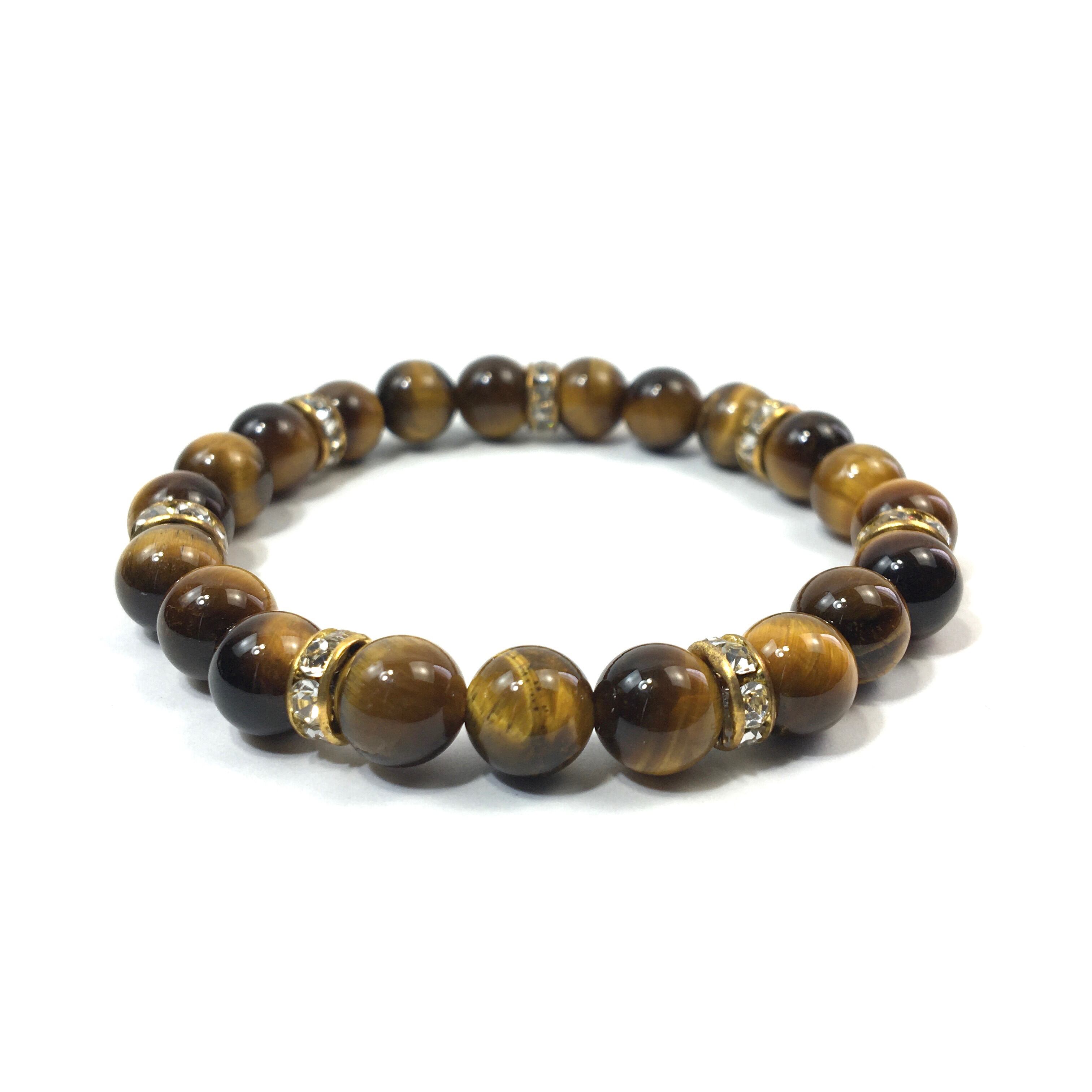 こちらは、8mm玉のタイガーアイを使ったパワーストーンブレスレットです。シンプルなデザインでどんなコーディネートにも合わせやすいデザインに仕上げています。サイズは内周約15cmです。気になる方は是非この機会にどうぞ。