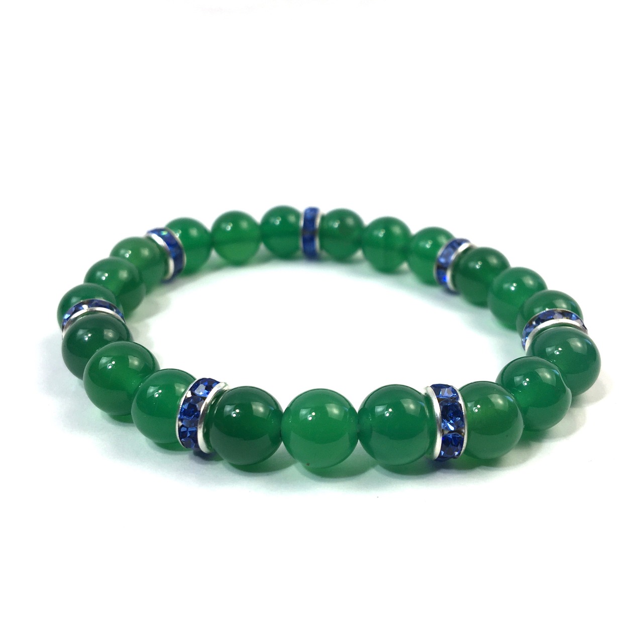 こちらは、8mm玉の緑瑪瑙を使ったパワーストーンブレスレットです。シンプルなデザインでどんなコーディネートにも合わせやすいデザインに仕上げています。サイズは内周約15cmです。気になる方は是非この機会にどうぞ。