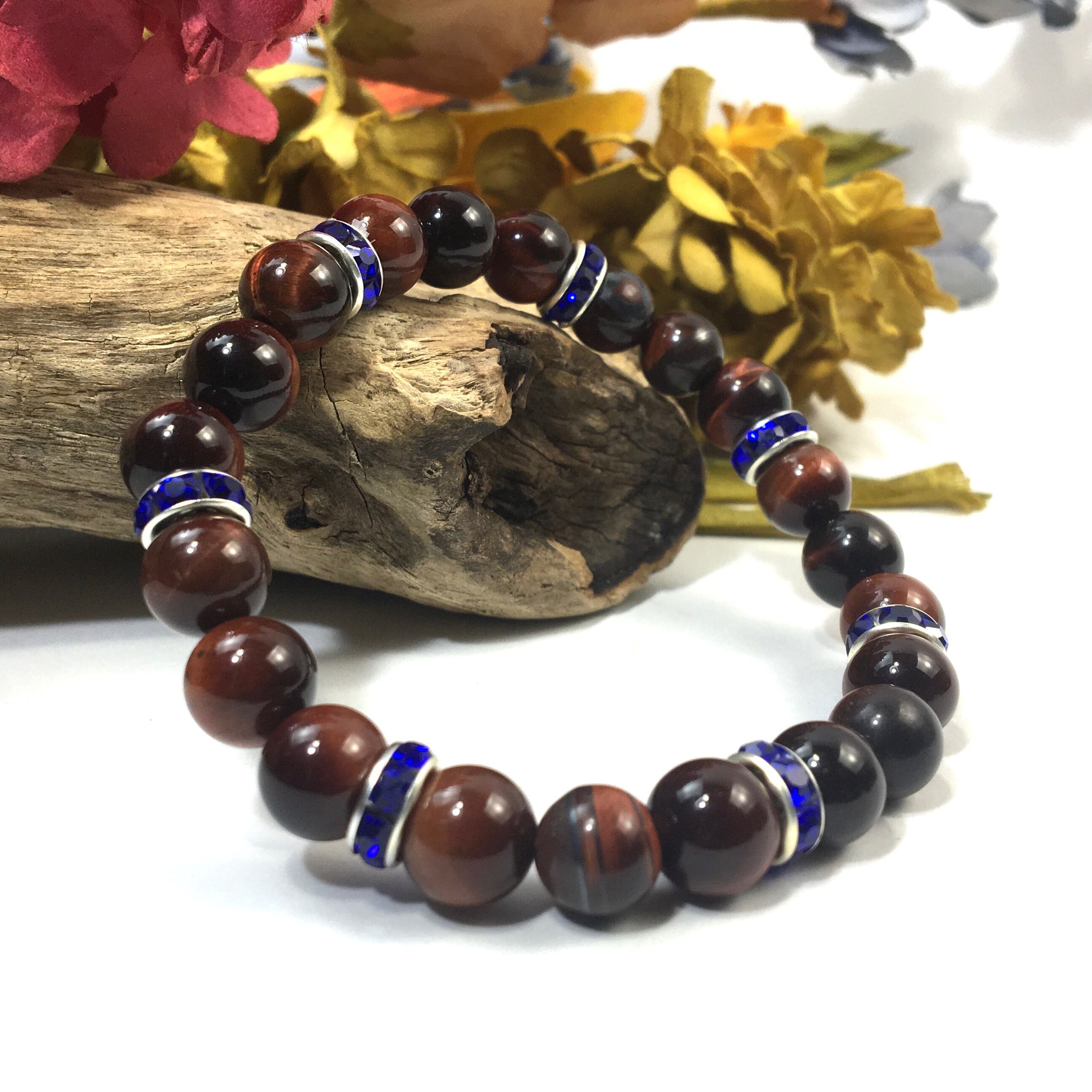 パワーストーン ブレスレット レッドタイガーアイ 天然石ブレス (ダークブルー)レディース 女性 数珠ブレス 開運 プレゼント ギフト