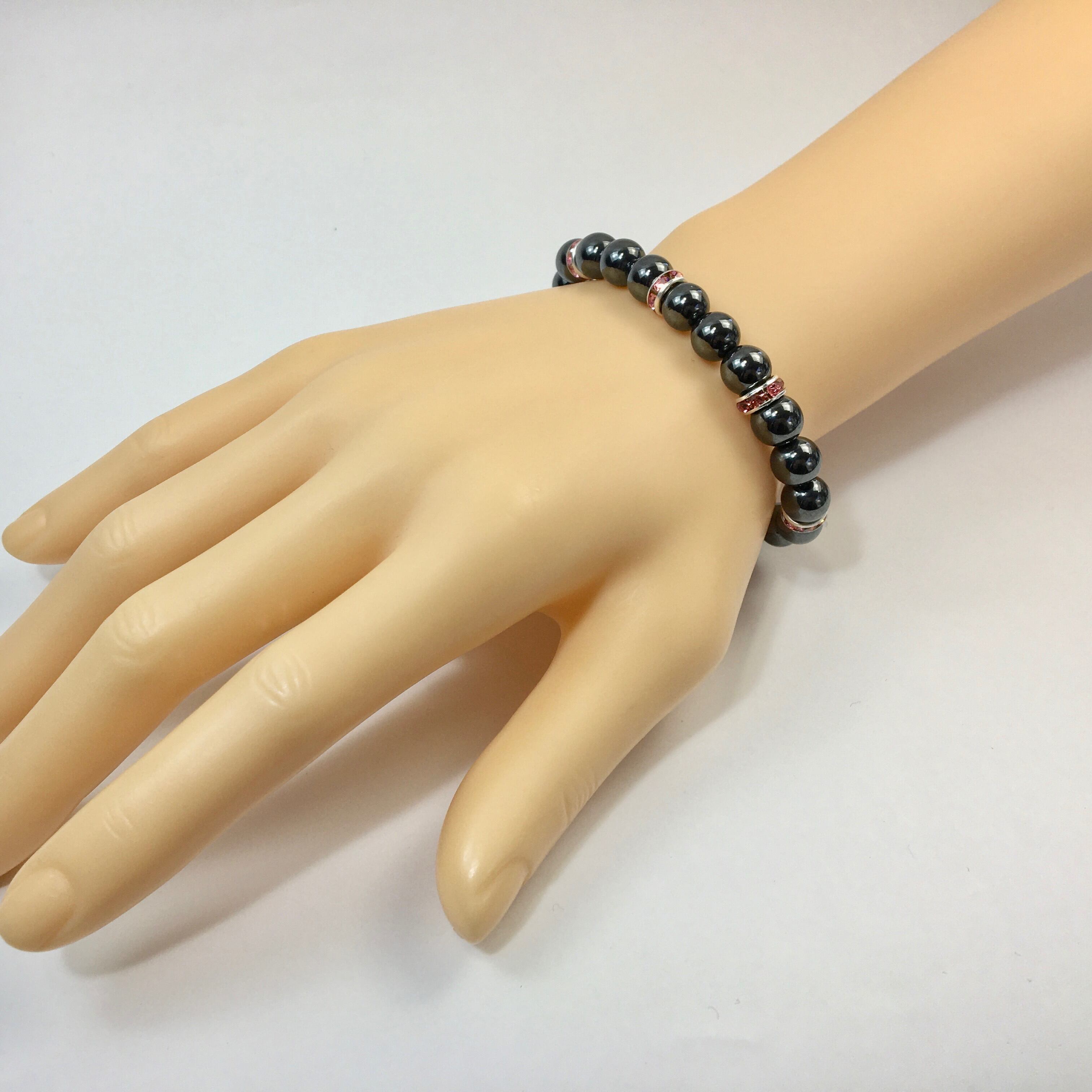 こちらは、8mm玉のヘマタイトを使ったパワーストーンブレスレットです。シンプルなデザインでどんなコーディネートにも合わせやすいデザインに仕上げています。サイズは内周約15cmです。気になる方は是非この機会にどうぞ。