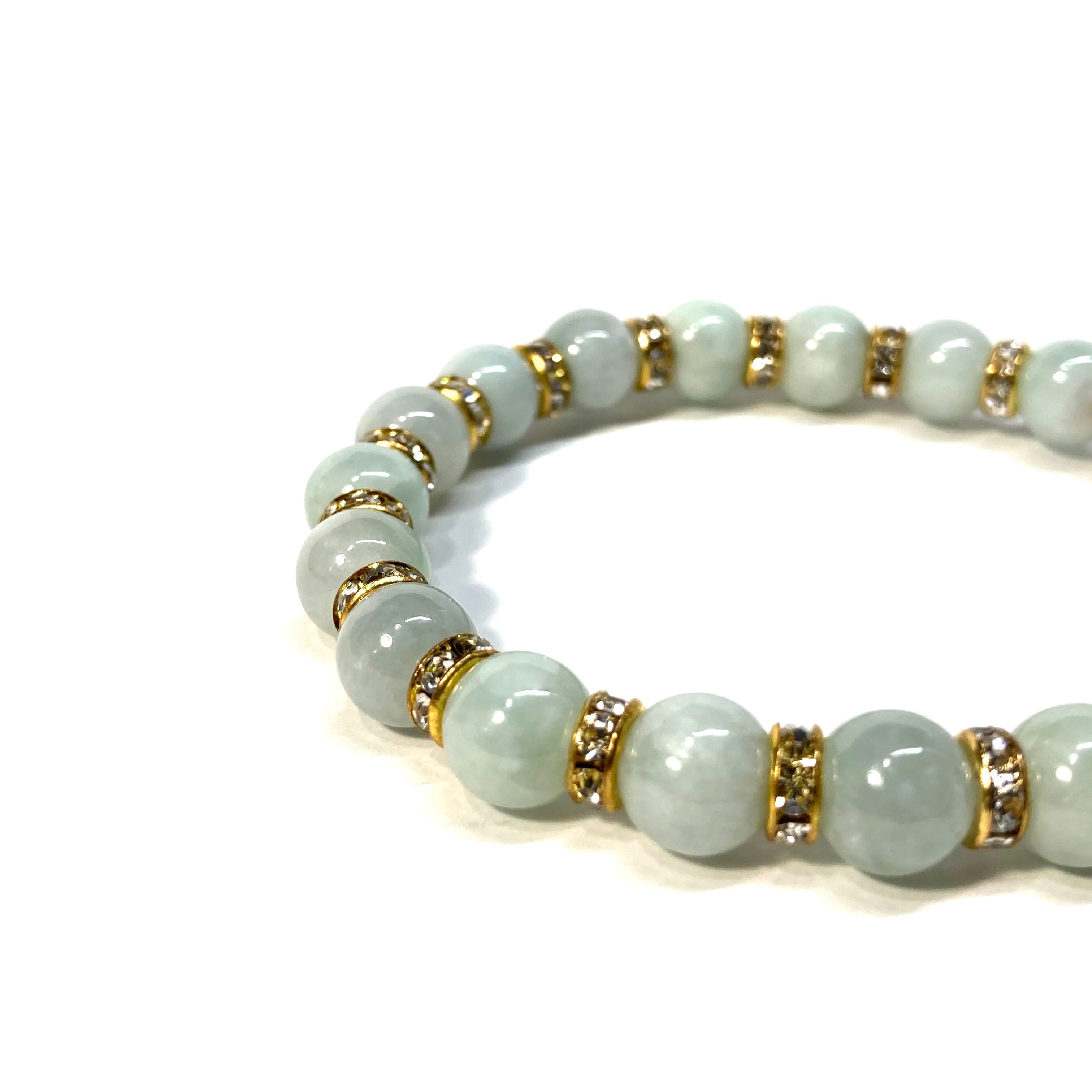 ビルマ翡翠 パワーストーン ブレスレット 8mm 5月誕生 (ゴールド)メンズ・レディース 男性・女性 数珠ブレス 開運