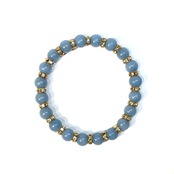 こちらは、エンジェライトの8mm玉を使用したパワーストーンブレスレットです。石との間にはロンデルを挟み高級感を演出しております。シンプルなデザインは、シーン問わずどんなコーディネートとも合わせ易いブレスレットです。サイズは内周約15cm (手首周りを測り少し余裕をもってお買い求めくださいませ。)です。当社の中でも一番人気の実績があるデザインとなっております。気になる方はお早めにどうぞ。