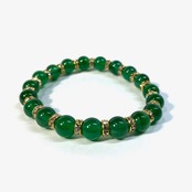 こちらは、緑瑪瑙の8mm玉を使用したパワーストーンブレスレットです。石との間にはロンデルを挟み高級感を演出しております。シンプルなデザインは、シーン問わずどんなコーディネートとも合わせ易いブレスレットです。サイズは内周約15cm (手首周りを測り少し余裕をもってお買い求めくださいませ。)です。当社の中でも一番人気の実績があるデザインとなっております。気になる方はお早めにどうぞ。