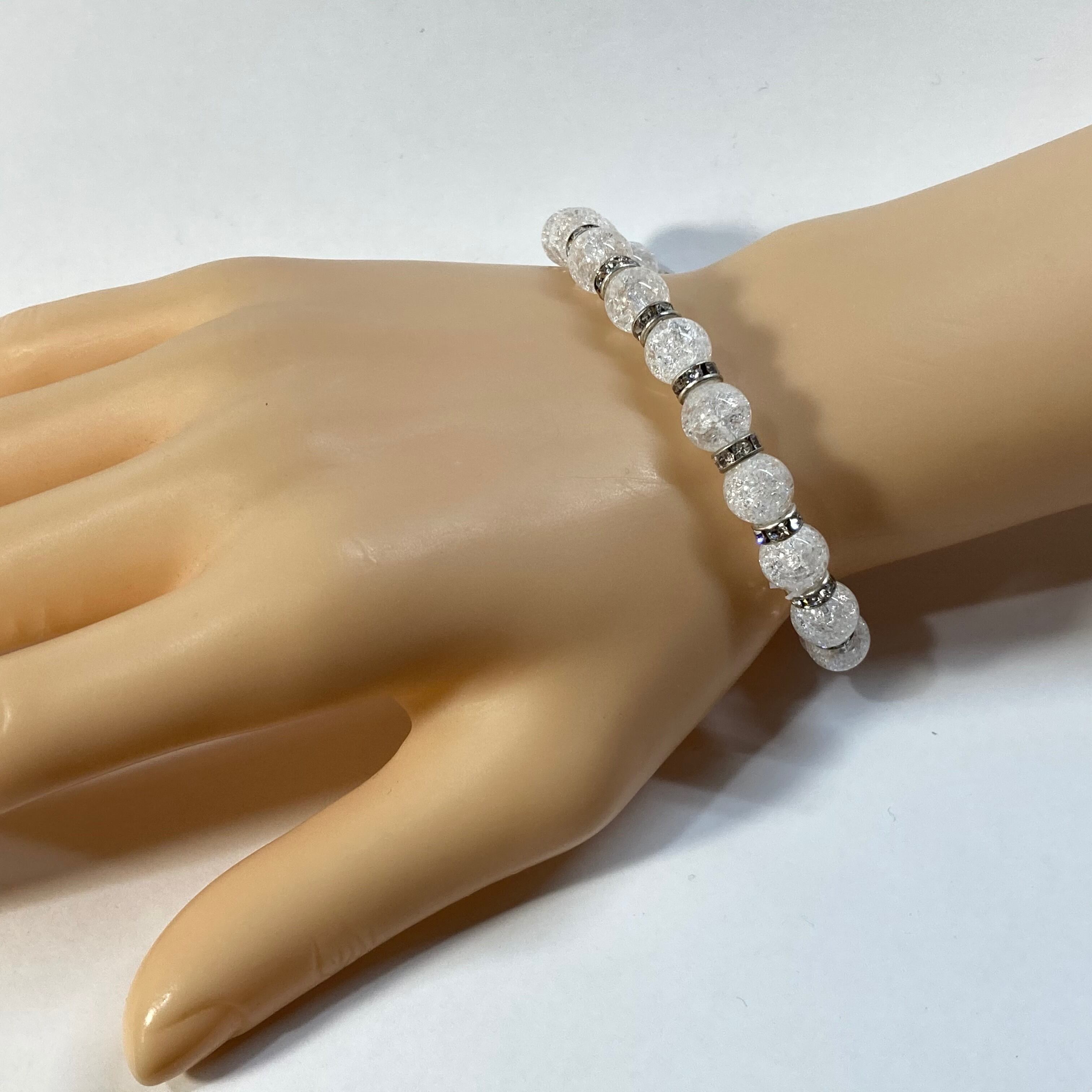 クラック水晶 パワーストーン ブレスレット 8mm (シルバー)メンズ・レディース 男性・女性 数珠ブレス 開運