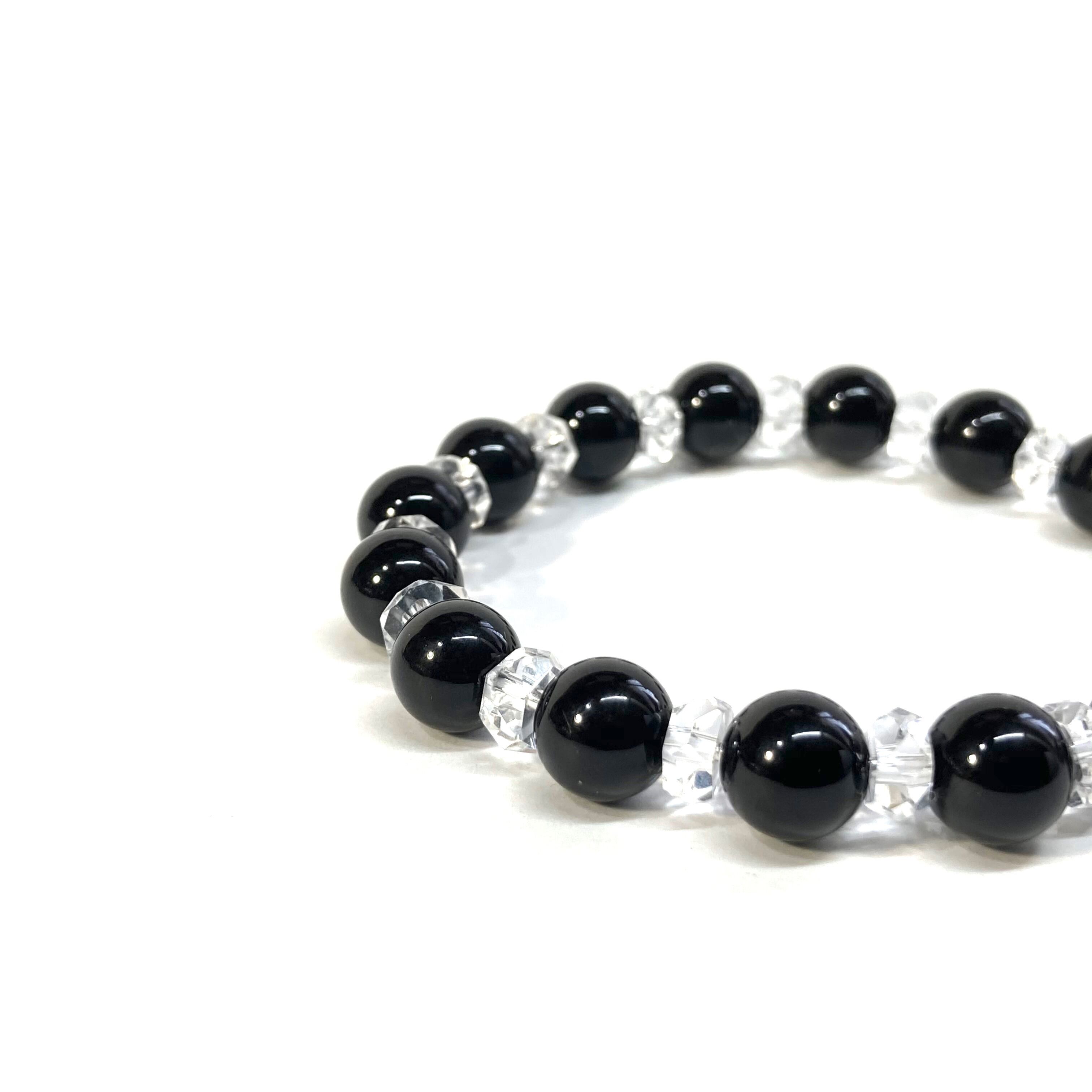 オニキス パワーストーン ブレスレット 天然石ブレスレット 8mm (カット水晶) メンズ・レディース 男性・女性 数珠ブレス 開運