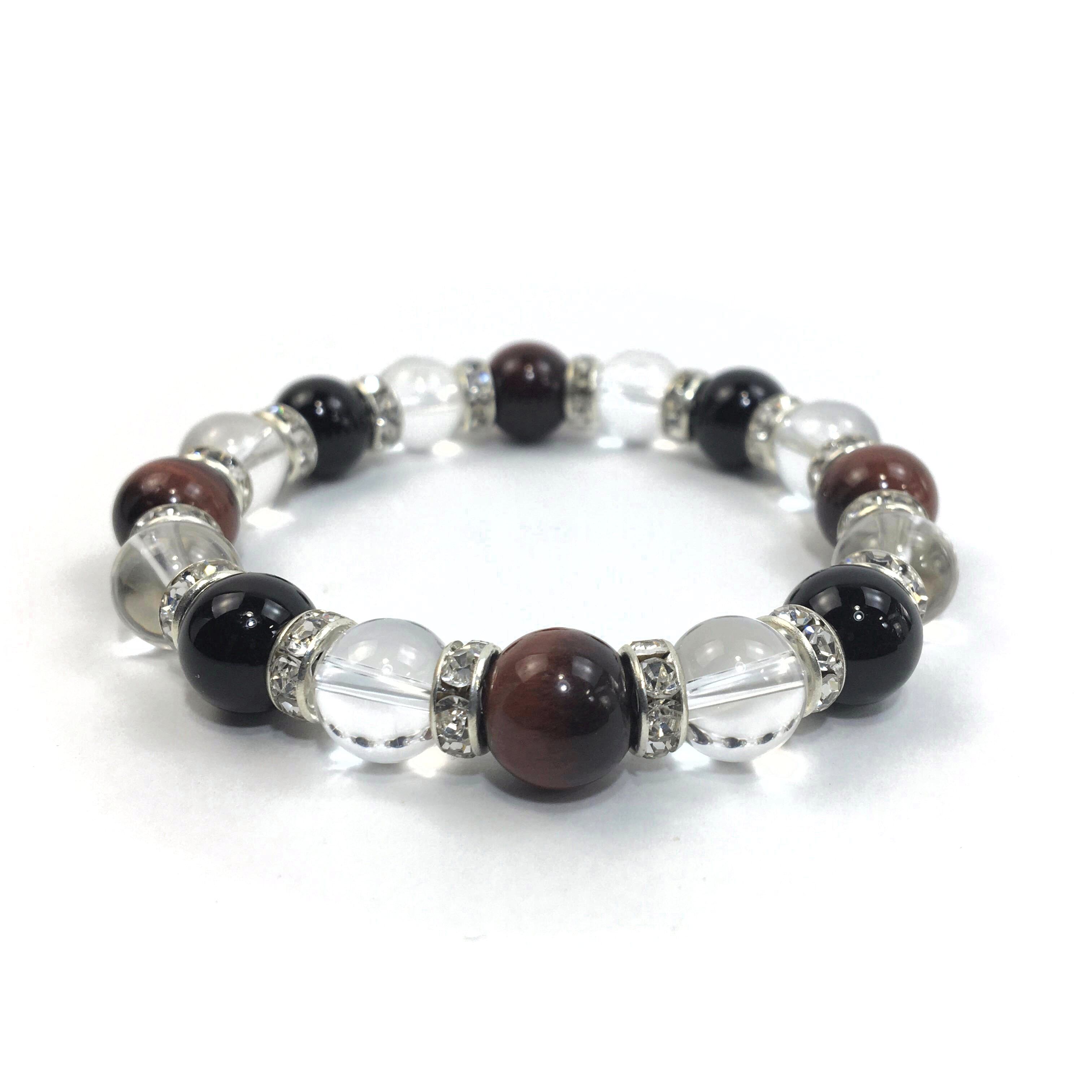 レッドタイガーアイ×水晶×オニキス パワーストーン ブレスレット 10mm(シルバー)メンズ・レディース 男性・女性 数珠ブレス 開運 ☆