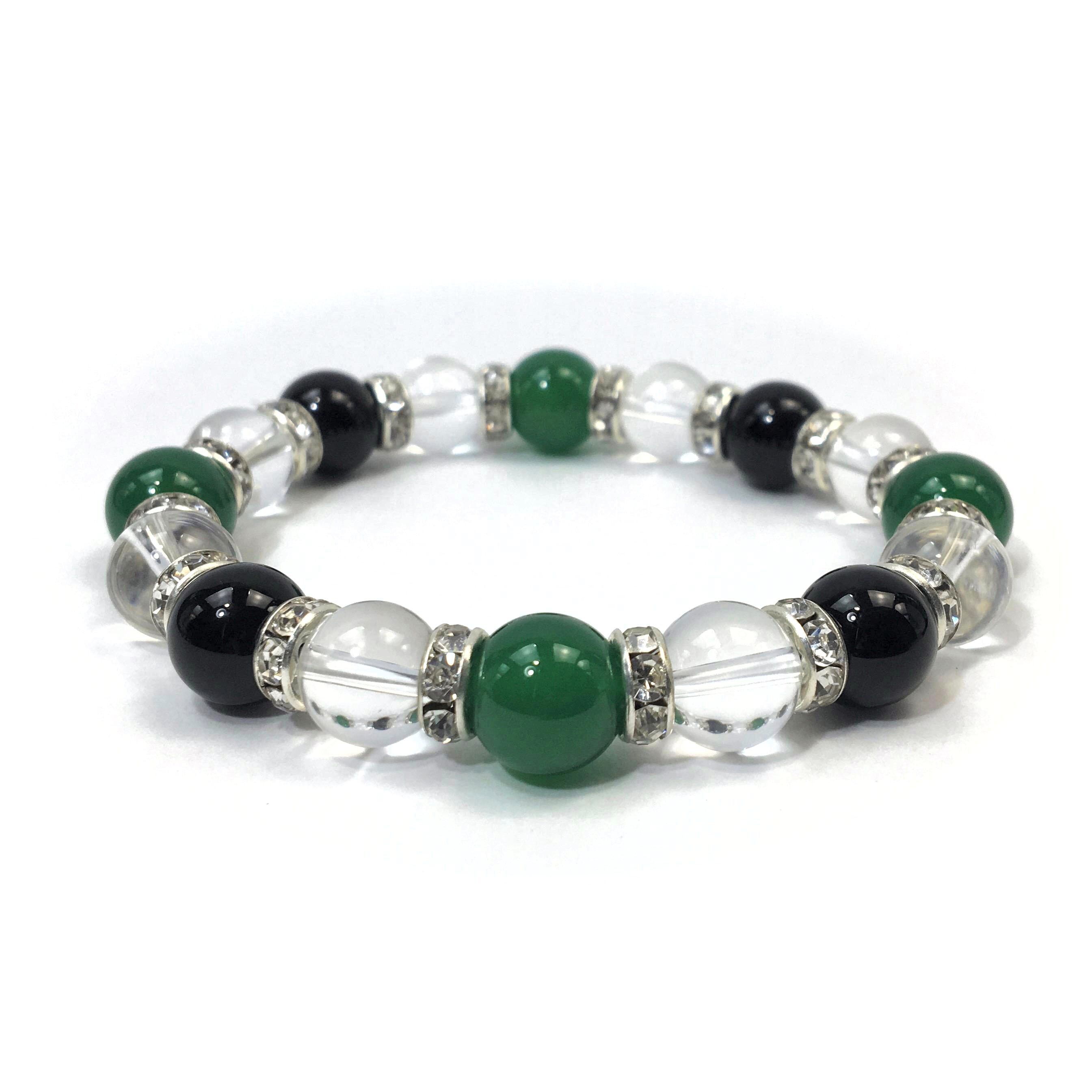 緑瑪瑙×水晶×オニキス パワーストーン ブレスレット 10mm(シルバー)メンズ・レディース 男性・女性 数珠ブレス 開運 ☆