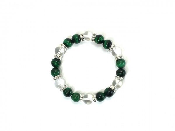 グリーンタイガーアイ×水晶 パワーストーン ブレスレット 天然石 10mm(シルバー)メンズ・レディース 男性・女性 数珠ブレス 開運 ☆