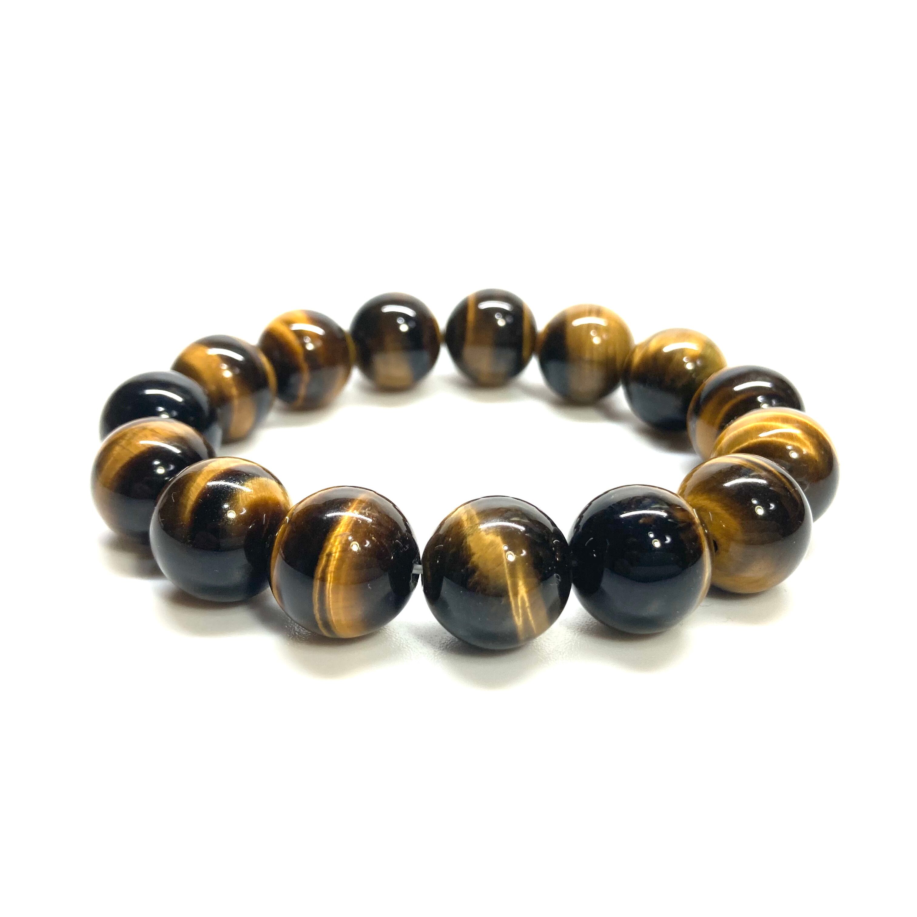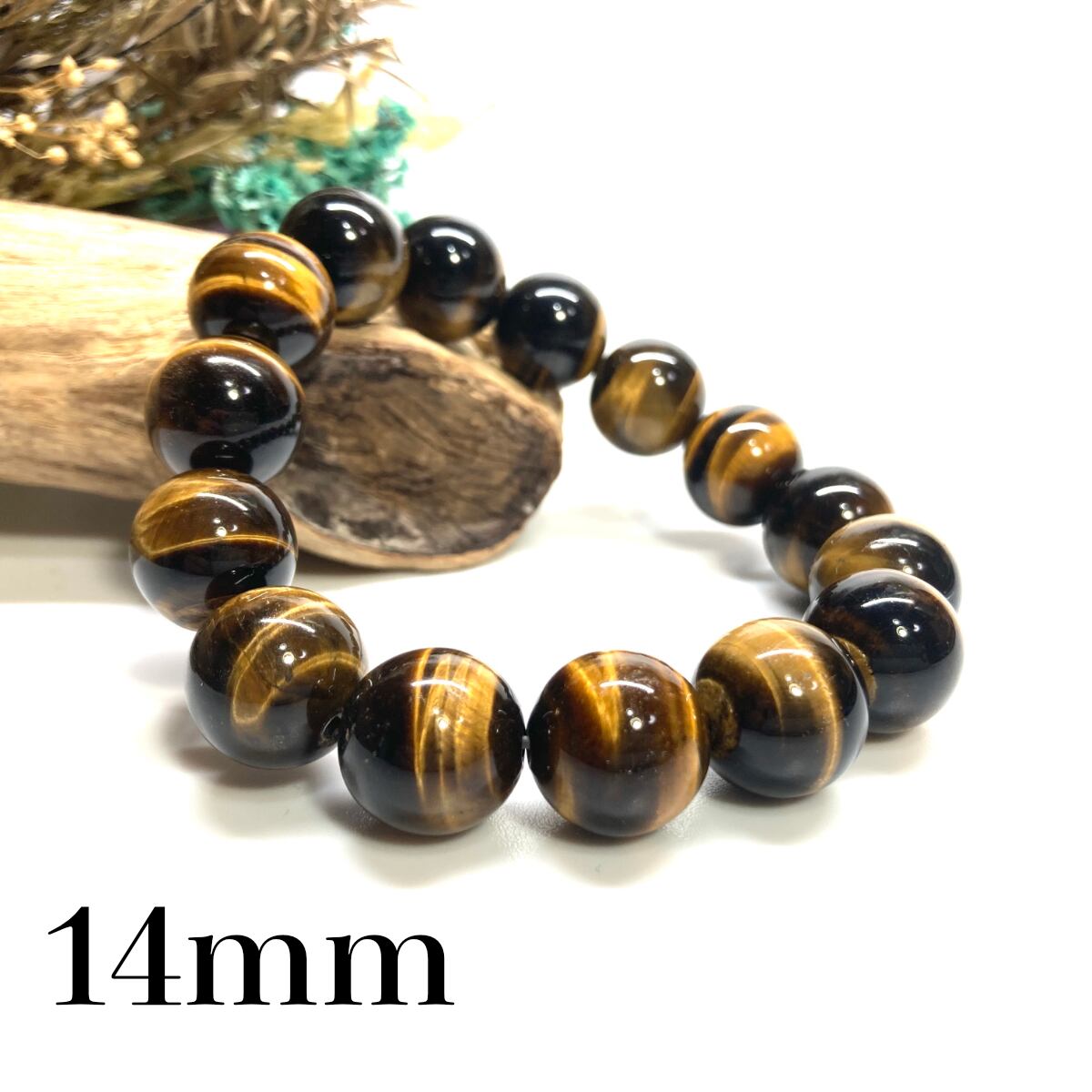 タイガーアイ パワーストーン ブレスレット 天然石ブレス 14mm シンプル メンズ・レディース 男性・女性 数珠ブレス 開運 ☆