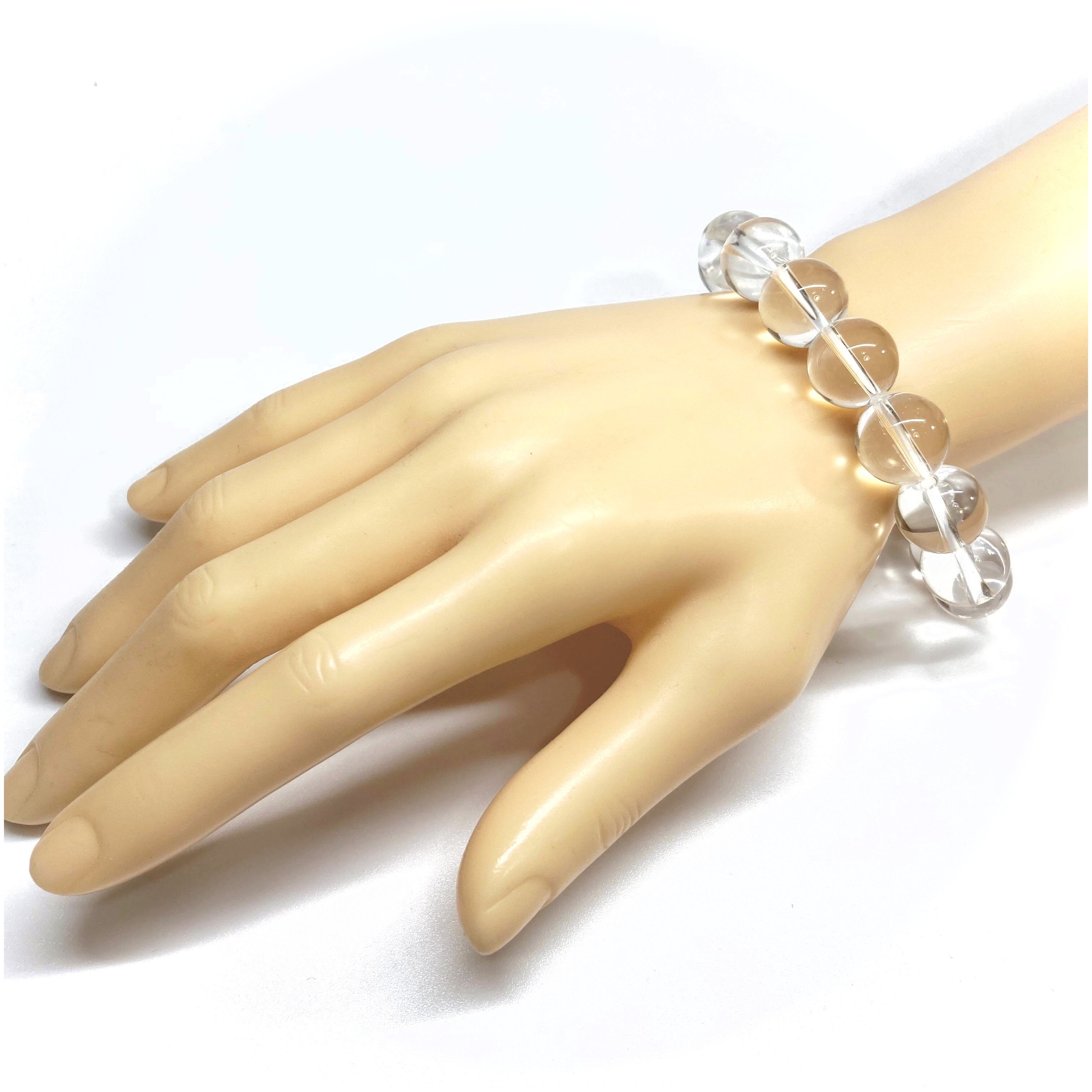 こちらは、14mm玉の水晶を使用した天然石ブレスレットです。シンプルなデザインですのでどんなコーディネートとも合わせ易いブレスレットです。石大きさはインパクトを与えてくれる大きさの14mm玉を使用しています。内周約17cmです。数に限りがございますので気になる方はお早めにどうぞ。