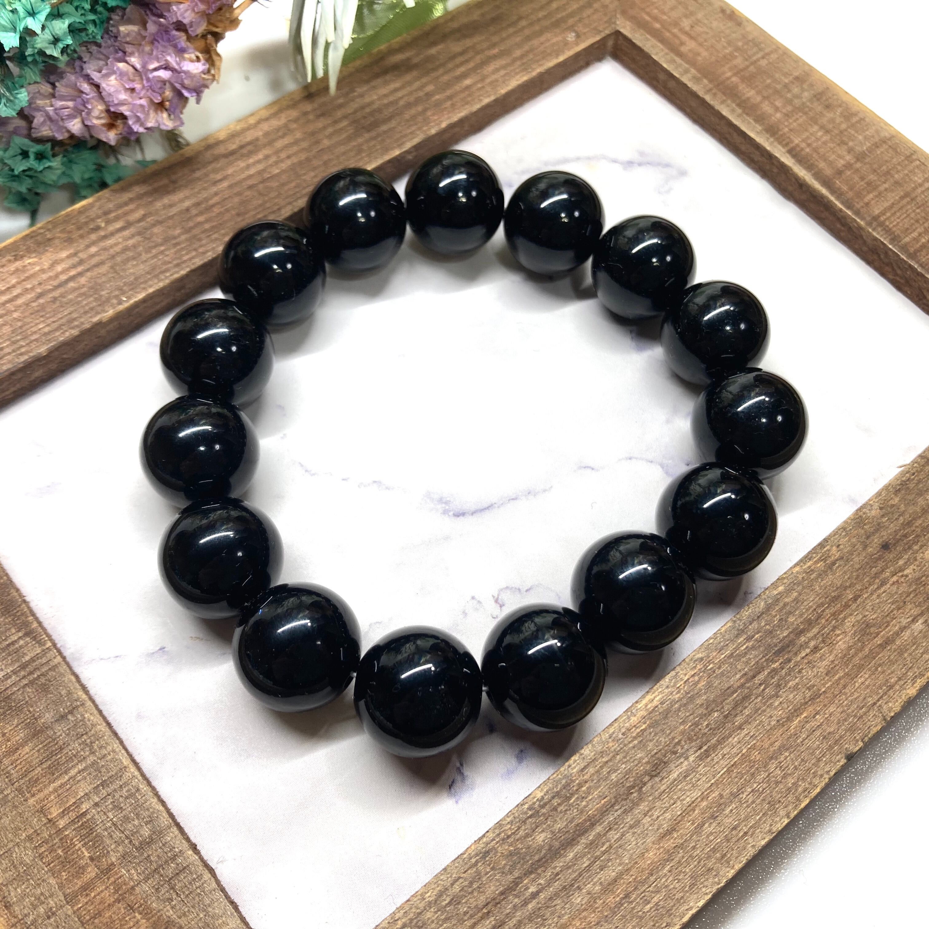 オニキス パワーストーン ブレスレット 天然石ブレス 14mm シンプル メンズ・レディース 男性・女性 数珠ブレス 開運 ☆