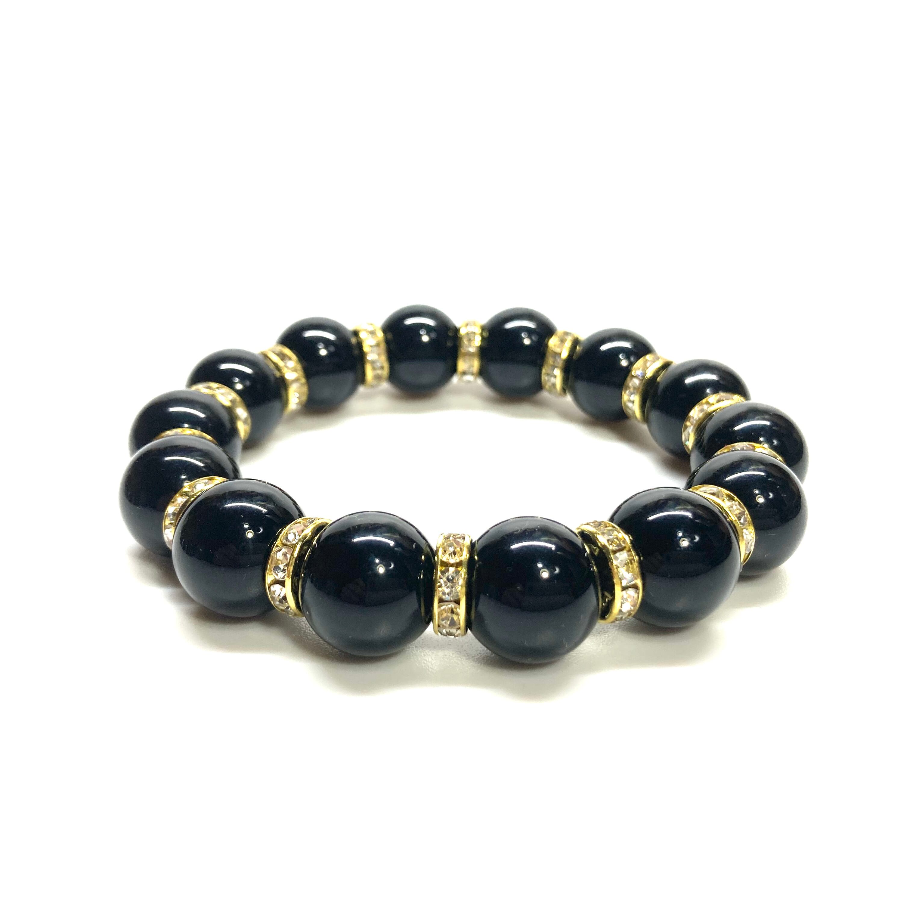 オニキス パワーストーン ブレスレット 天然石ブレス (ゴールド) 14mm メンズ・レディース 男性・女性 数珠ブレス 開運 ☆
