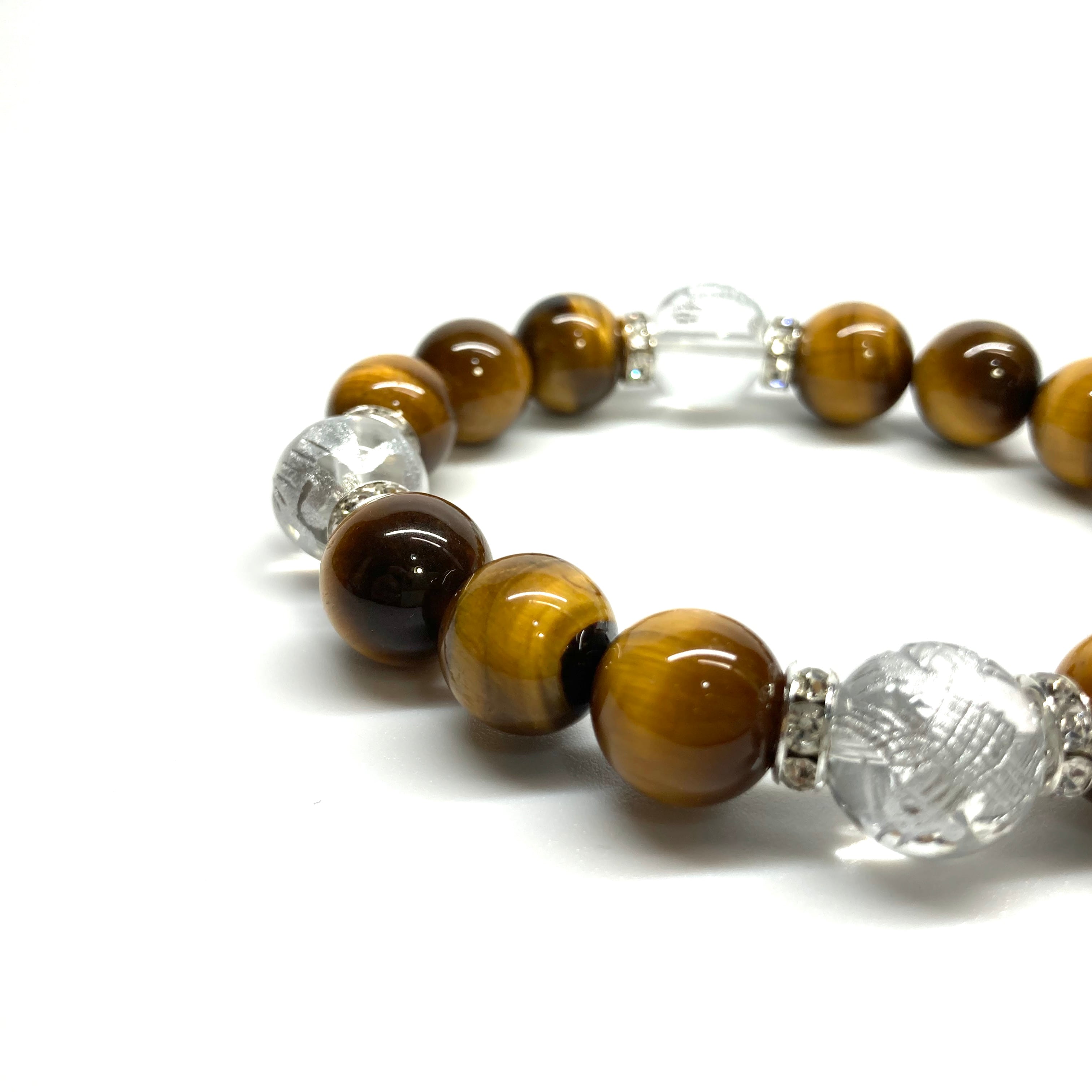 ご覧頂いているブレスレットは、四神獣銀彫水晶とタイガーアイを組み合わせたブレスレット。守り神である四神とパワーストーンの組み合わせで運気の流れを引き寄せる強運ブレスレットです。シンプルなデザインで男女問わず、年齢問わずご使用頂けるデザインなっております。シンプルなデザインは日常のアクセントとして、仕事やビジネスカジュアル、パーティーや特別なイベントなど様々なシーン活用できます。また、ちょっと贈り物にも最適なブレスレットになっております。四神獣を身につけて厄災から身を守り、多くの運気を呼び込まれてください。