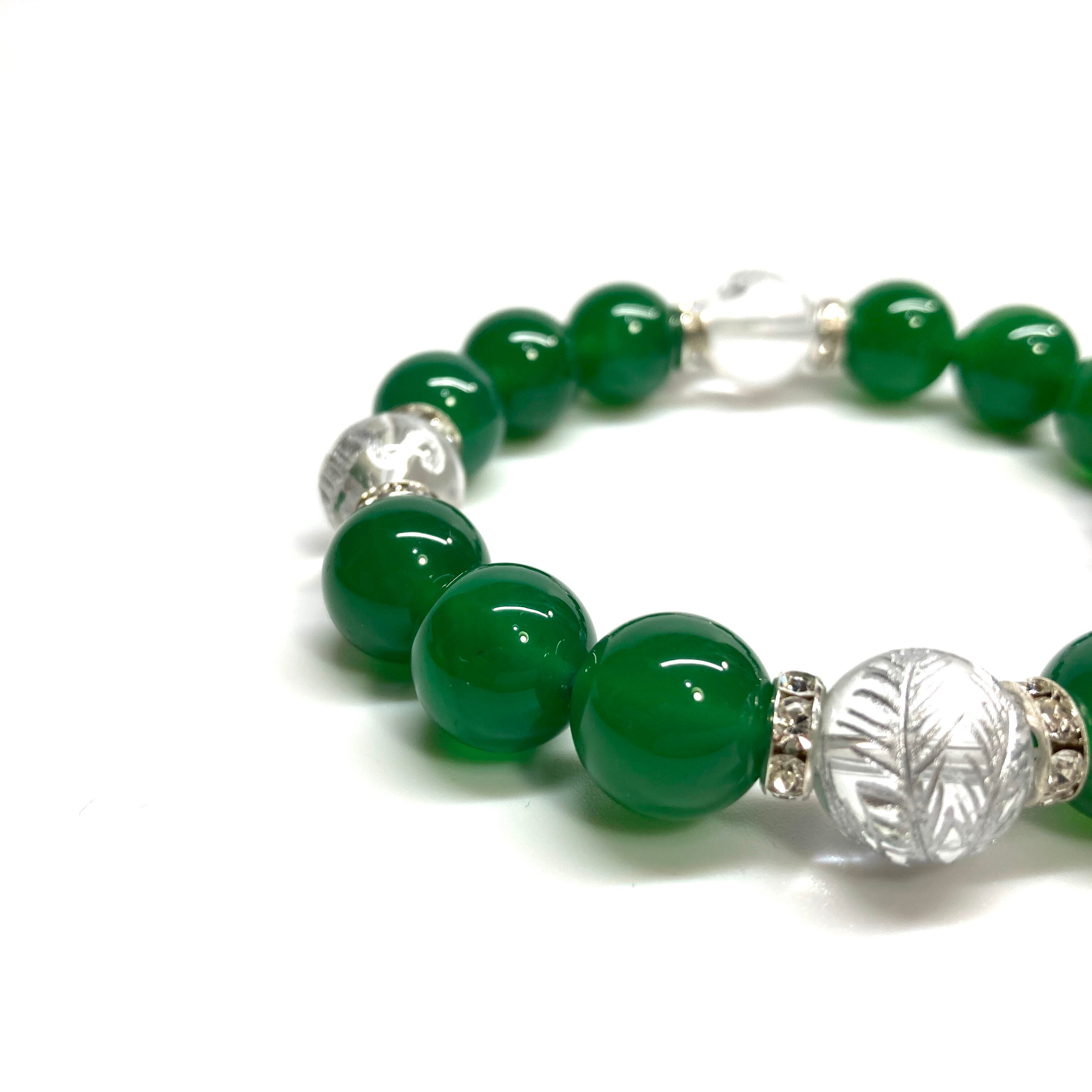 ご覧頂いているブレスレットは、四神獣銀彫水晶と緑瑪瑙を組み合わせたブレスレット。守り神である四神とパワーストーンの組み合わせで運気の流れを引き寄せる強運ブレスレットです。シンプルなデザインで男女問わず、年齢問わずご使用頂けるデザインなっております。シンプルなデザインは日常のアクセントとして、仕事やビジネスカジュアル、パーティーや特別なイベントなど様々なシーン活用できます。また、ちょっと贈り物にも最適なブレスレットになっております。四神獣を身につけて厄災から身を守り、多くの運気を呼び込まれてください。