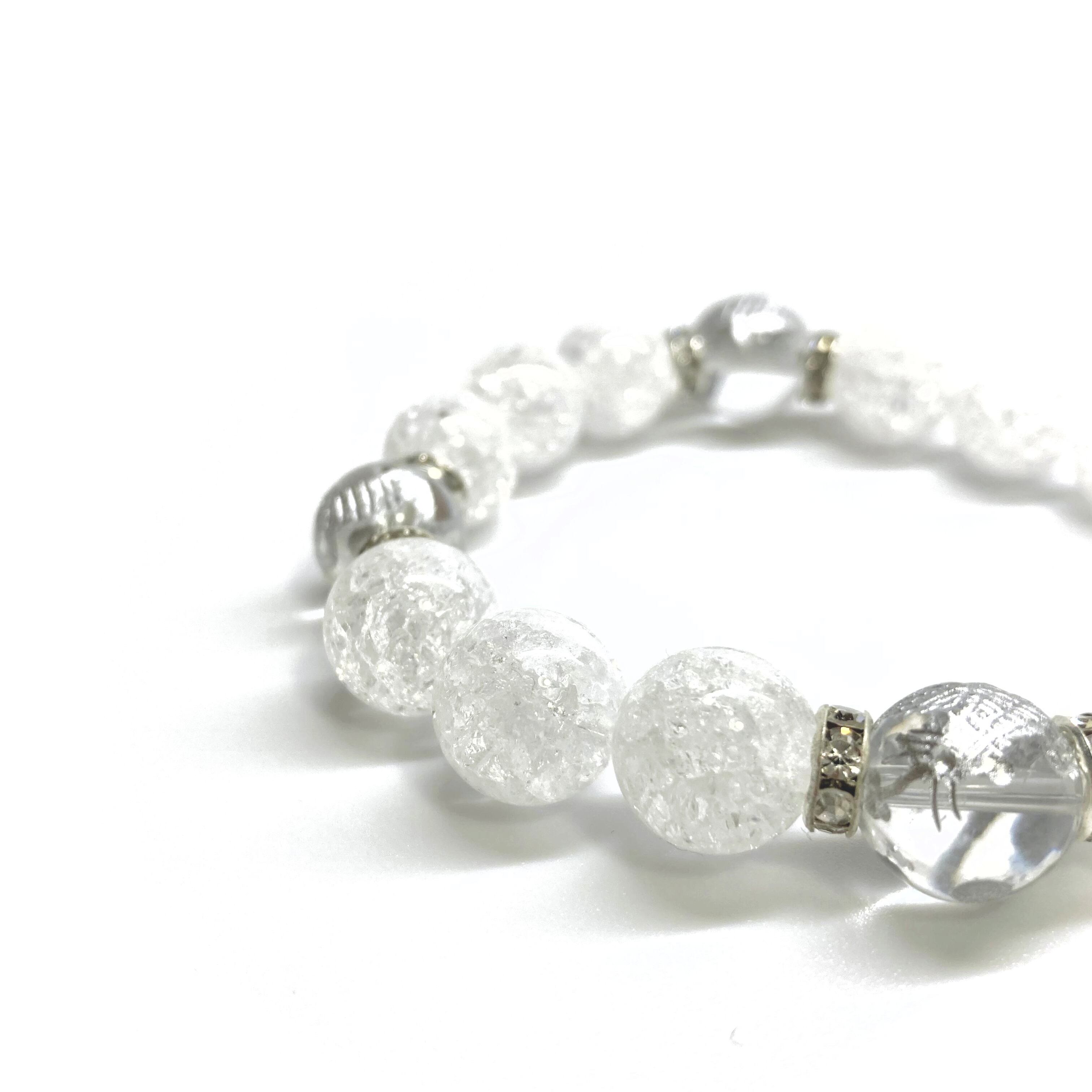 ご覧頂いているブレスレットは、四神獣銀彫水晶とクラック水晶を組み合わせたブレスレット。守り神である四神とパワーストーンの組み合わせで運気の流れを引き寄せる強運ブレスレットです。シンプルなデザインで男女問わず、年齢問わずご使用頂けるデザインなっております。シンプルなデザインは日常のアクセントとして、仕事やビジネスカジュアル、パーティーや特別なイベントなど様々なシーン活用できます。また、ちょっと贈り物にも最適なブレスレットになっております。四神獣を身につけて厄災から身を守り、多くの運気を呼び込まれてください。