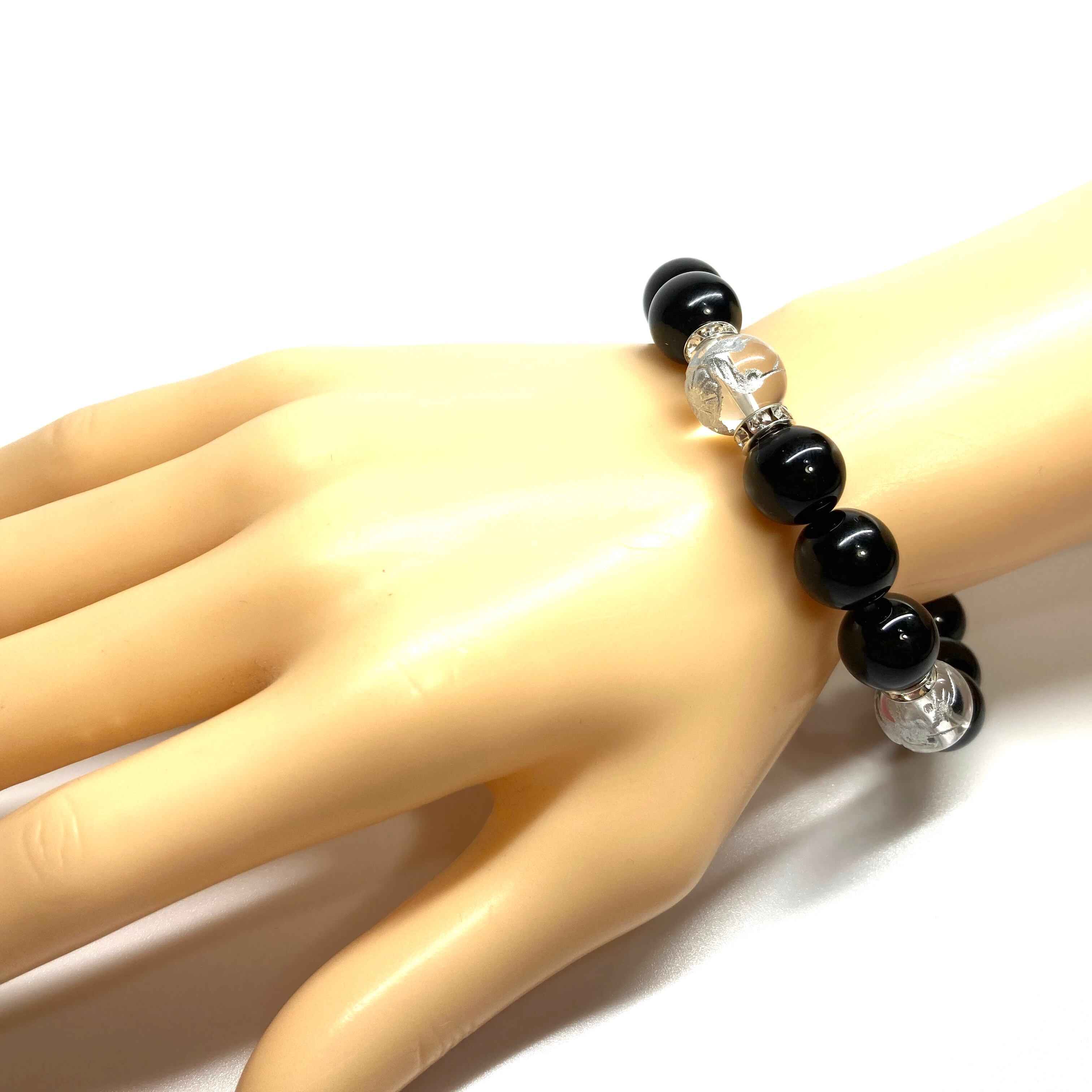 12mm 四神獣銀彫水晶×モリオン パワーストーン ブレスレット天然石 運気上昇 開運 ☆ 金運 健康運 厄払い お守り 青龍 白虎 玄武 朱雀 (シルバー)メンズ・レディース 男性・女性 数珠ブレス 開運 ☆