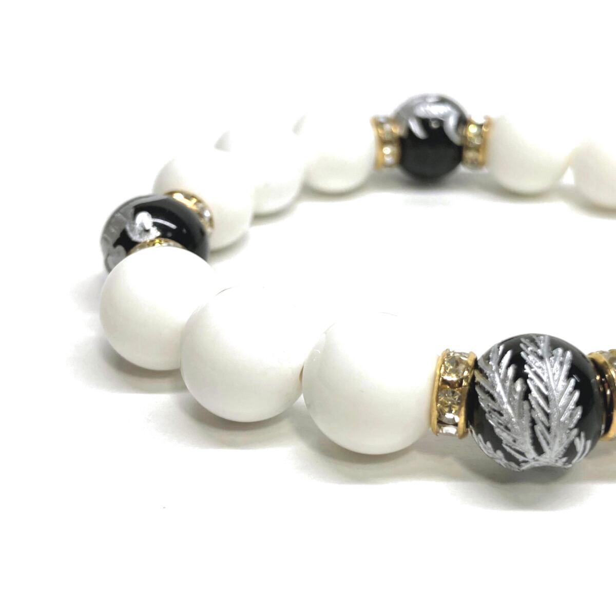 12mm 四神獣銀彫オニキス×ホワイトオニキス パワーストーン ブレスレット天然石 運気上昇 開運 ☆ 厄払い お守り 青龍 白虎 玄武 朱雀 (ゴールド)メンズ・レディース 男性・女性 数珠ブレス 開運 ☆