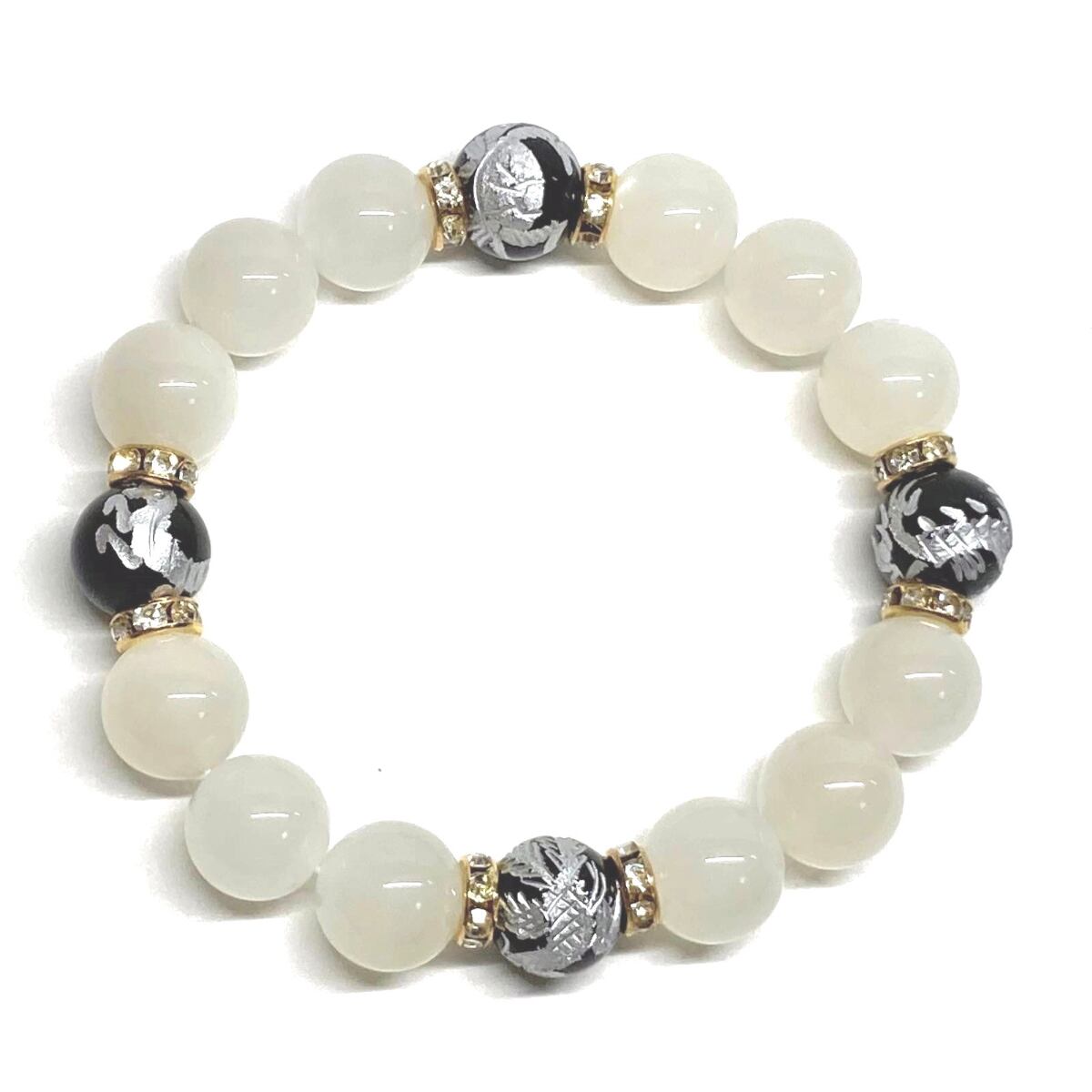 ご覧頂いているブレスレットは、四神獣銀彫オニキスとムーンストーンを組み合わせたブレスレット。守り神である四神とパワーストーンの組み合わせで運気の流れを引き寄せる強運ブレスレットです。シンプルなデザインで男女問わず、年齢問わずご使用頂けるデザインなっております。シンプルなデザインは日常のアクセントとして、仕事やビジネスカジュアル、パーティーや特別なイベントなど様々なシーン活用できます。また、ちょっと贈り物にも最適なブレスレットになっております。四神獣を身につけて厄災から身を守り、多くの運気を呼び込まれてください。