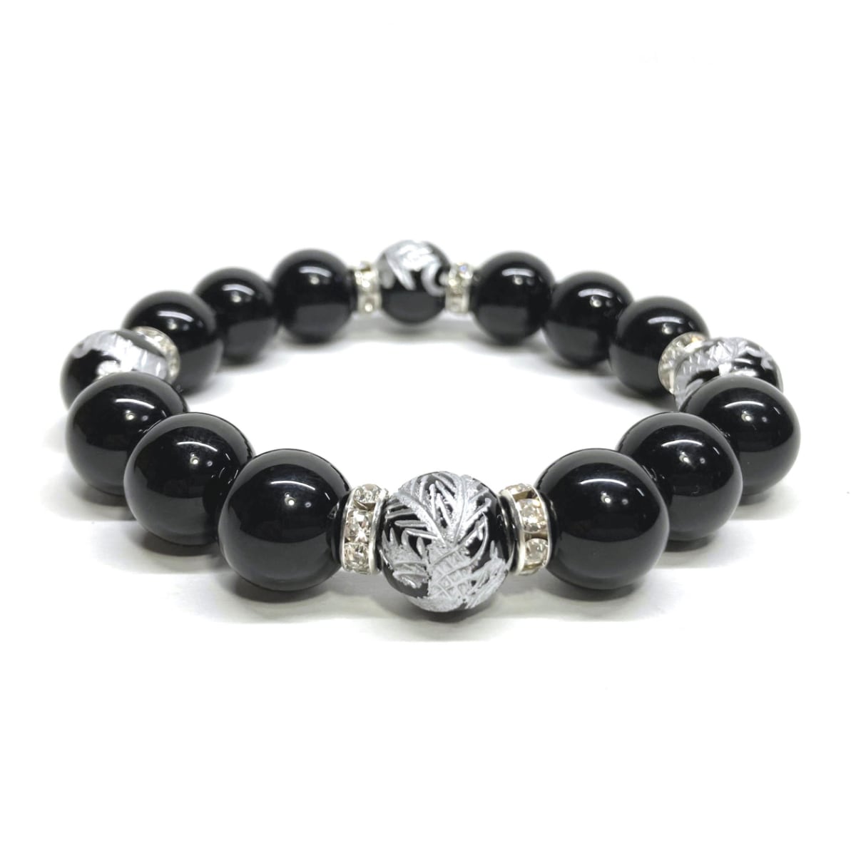 12mm 四神獣銀彫オニキス×モリオン パワーストーン ブレスレット天然石 運気上昇 開運 ☆ 金運 健康運 厄払い お守り 青龍 白虎 玄武 朱雀 (シルバー)メンズ・レディース 男性・女性 数珠ブレス 開運 ☆