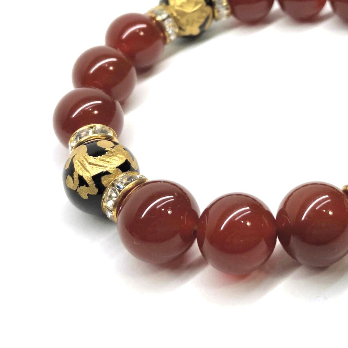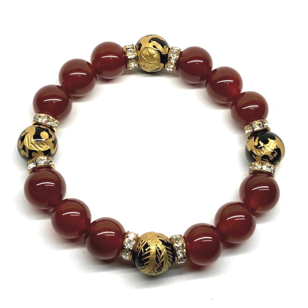 12mm 四神獣金彫オニキス×赤瑪瑙 パワーストーン ブレスレット天然石 運気上昇 開運 ☆ 金運 ギャンブル運 お守り 青龍 白虎 玄武 朱雀 (ゴールド)メンズ・レディース 男性・女性 数珠ブレス 開運 ☆