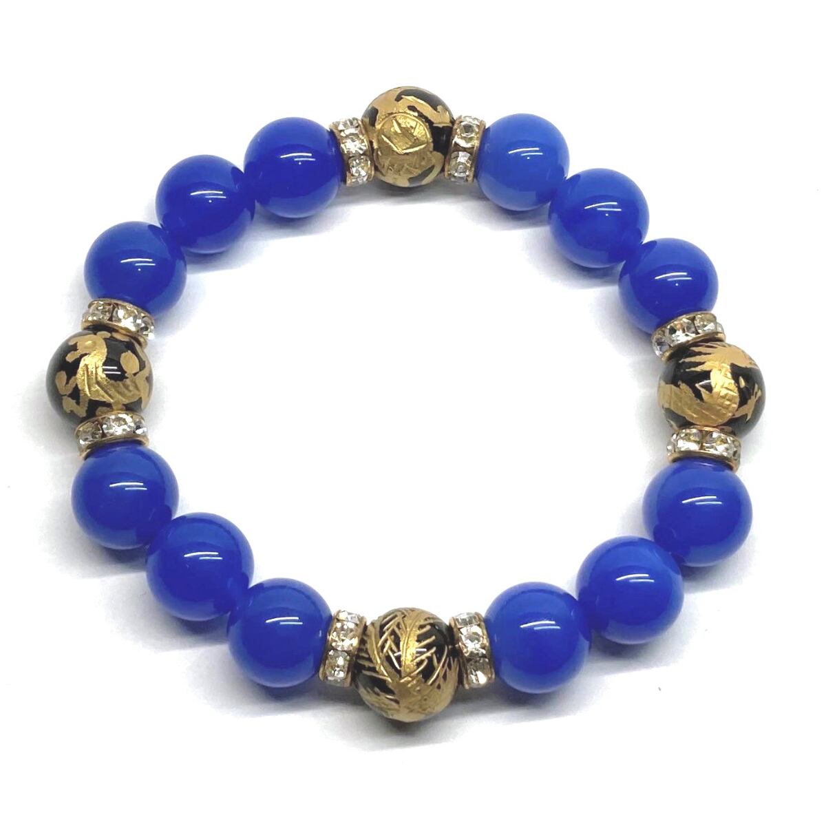 12mm 四神獣金彫オニキス×青瑪瑙 パワーストーン ブレスレット天然石 運気上昇 開運 ☆ 金運 健康運 お守り 青龍 白虎 玄武 朱雀 (ゴールド)メンズ・レディース 男性・女性 数珠ブレス 開運 ☆