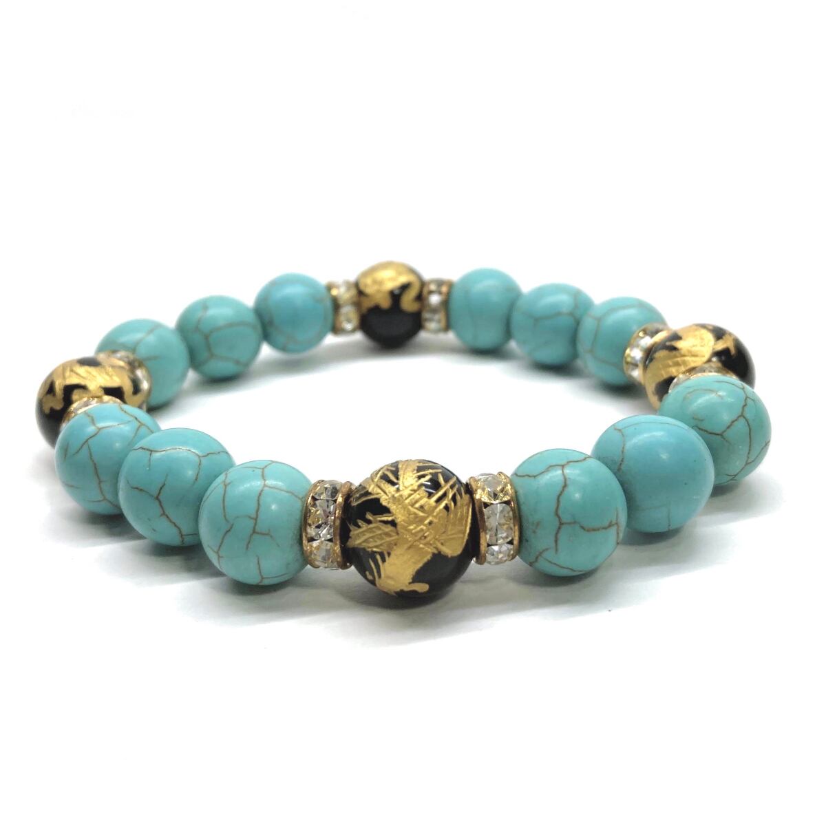 12mm 四神獣金彫オニキス×ターコイズ パワーストーン ブレスレット 運気上昇 開運 金運 健康運 厄除け お守り 青龍 白虎 玄武 朱雀 (ゴールド)メンズ・レディース 男性・女性 数珠ブレス 開運 /2 ☆