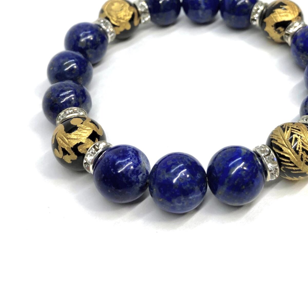 ご覧頂いているブレスレットは、四神獣金彫オニキスとラピスラズリを組み合わせたブレスレット。守り神である四神とパワーストーンの組み合わせで運気の流れを引き寄せる強運ブレスレットです。シンプルなデザインで男女問わず、年齢問わずご使用頂けるデザインなっております。シンプルなデザインは日常のアクセントとして、仕事やビジネスカジュアル、パーティーや特別なイベントなど様々なシーン活用できます。また、ちょっと贈り物にも最適なブレスレットになっております。四神獣を身につけて厄災から身を守り、多くの運気を呼び込まれてください。